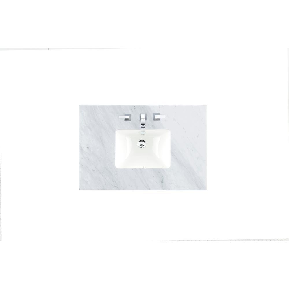Whether you're redoing your master bathroom or just refreshing your guest bathroom, James Martin Vanities tops are the perfect choice for you. We offer a beautiful selection of different stone tops that will work with any decor. We offer one color in the marble group, which is Carrara White, a crisp white stone with distinctive grey veining running thru it. Variations in color, pattern, size, shape and shade are inherent and unique characteristics of an engineered marble and it is to be expected with this product. Our marble top brings a whole new level of functionality, durability, class, and style to your home. As stone surfaces continue to be a hot trend in bathroom decor, our tops with all their wonderful characteristics combine to create an ideal surface for our vanity countertops.
