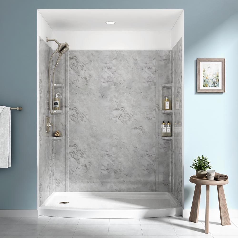 Ovation 32 in. x 60 in. x 72 in. 5-Piece Glue-Up Alcove Shower Wall Set in Silver Celestial