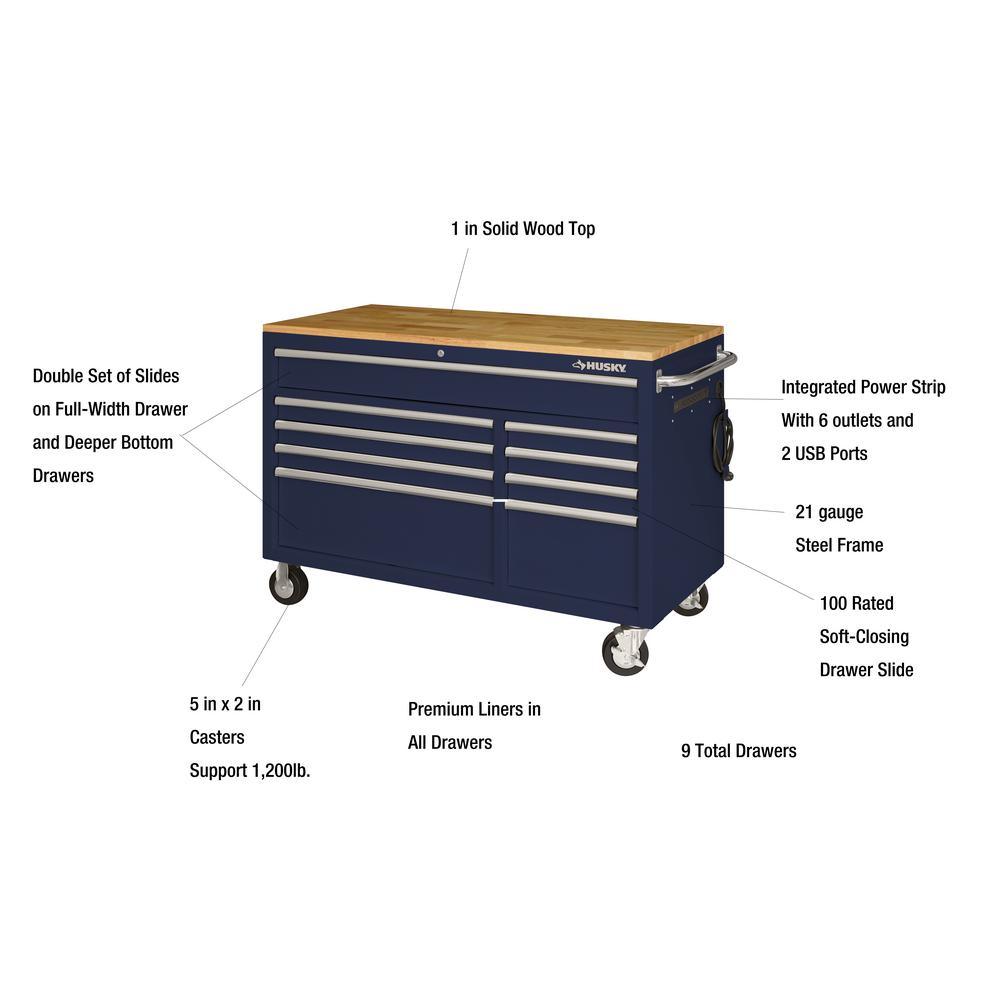 52 in. 9-Drawer Mobile Workbench in Gloss Blue