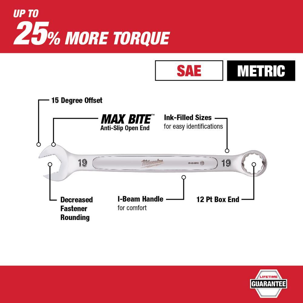 • All combination wrenches: MAX BITE™ Open-End Grip for 25% more torque, less rounding and stripping