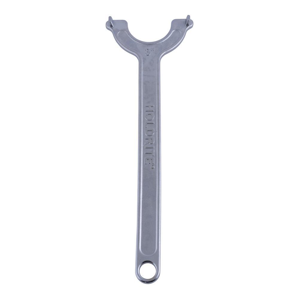 The Holdrite Testrite spanner ring wrench is designed to be the only tool needed for Holdrite Testrite tees. The spanner wring allows you to remove and re-use the Testrite test wedge, which allows temporary blocking of the DWV stack for testing while providing connections for convenient system fill and drain. Works with 2 in. and 3 in. Testrite tees.