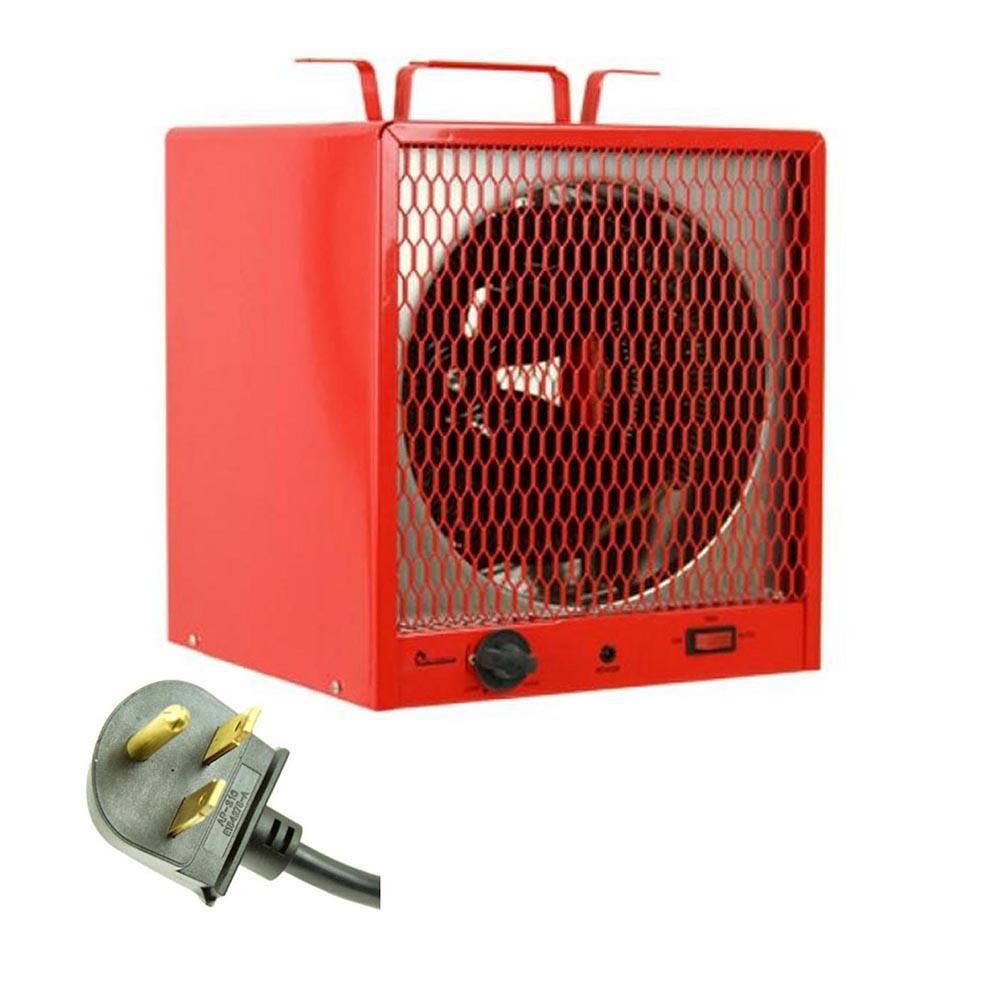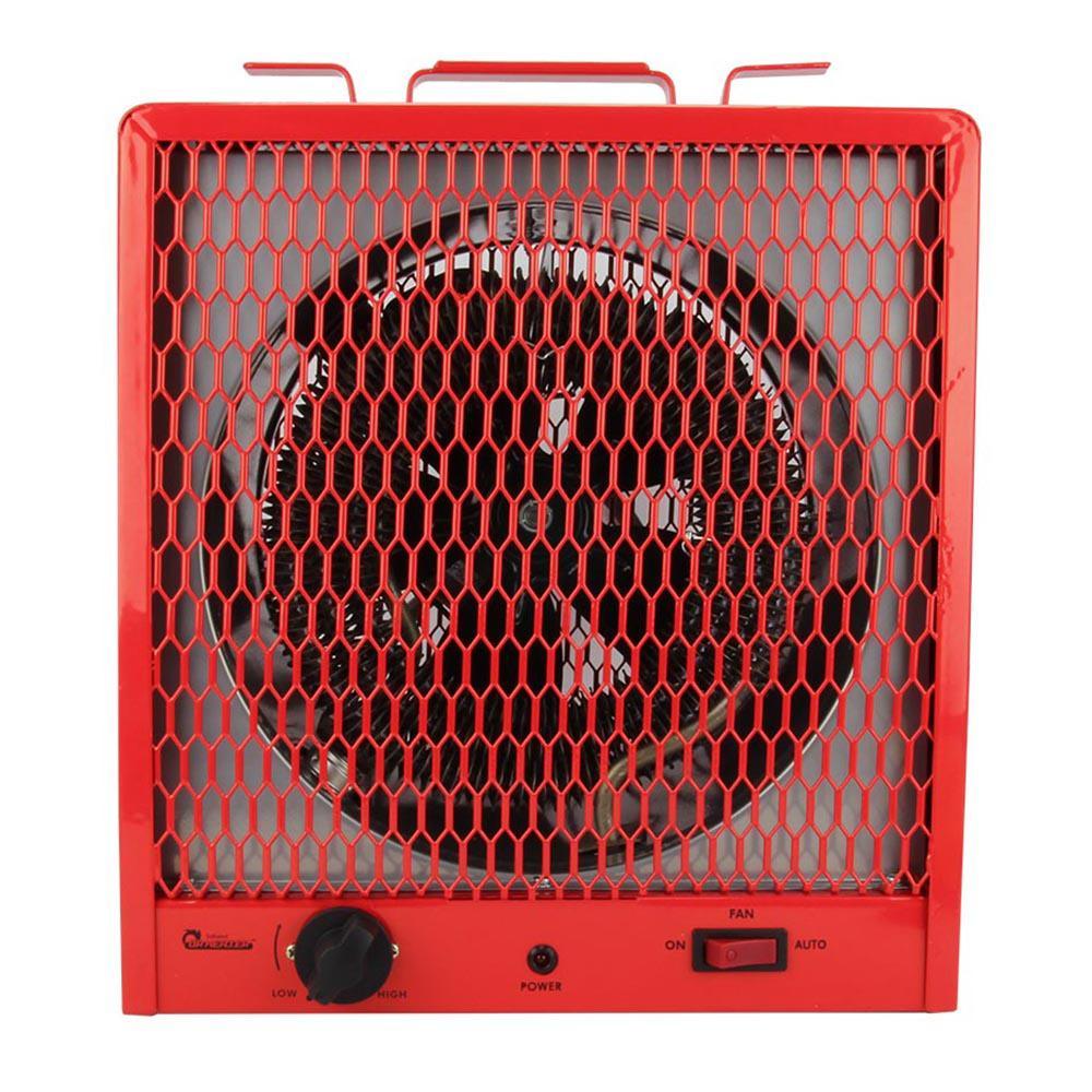 The DR988 industrial electric garage heater is perfect for warming any construction site, garage, basement, and workshop with its specially designed heating element and features an impressive portable design. It comes with a built in thermostat that can be adjusted from low to high. It also features a fan that provides continuous warmth. The DR988 industrial heater is dependable and sturdy. Build-in cord storage helps keep your space tidy. Safety features include finger-proof intake and discharge grills and a high temperature heating limit. For quick, safe, and efficient heating, choose the DR988, and you will never be left out in the cold.