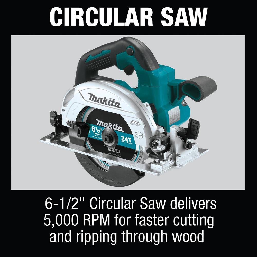 • 6-1/2 in. Circular Saw with Makita built electronically controlled BL Brushless motor delivers 5,000 RPM for faster cutting and ripping