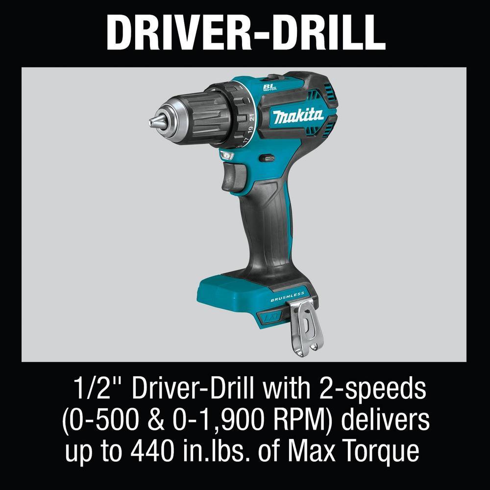 Makita is a leader in cordless technology, and the XT613X1 Combo Kit provides six tools showcasing the unique 18V LXT technology. This 6-Piece Combo Kit is built for the pro-user who requires a wide range of best-in-class cordless solutions for drilling, driving, fastening, cutting, and lighting. Some tools feature Makita's BL Brushless Motor which delivers longer run time, increased power and speed, and longer tool life. The XT613X1 includes a brushless in. driver-drill with two speed settings, a brushless impact driver with variable speeds that delivers 1,460 in. lbs. of Max Torque, a 6-1/2 in. circular saw with 3,700 RPM for faster cutting, a recipro saw with 0-3,000 SPM, a vacuum with strong suction power for faster and efficient cleaning, and a high-luminance L.E.D. flashlight. Its a one-stop solution for a wide range of applications. The kit includes two 18V LXT 3.0Ah batteries and the efficient Rapid Optimum Charger. For added convenience, the batteries feature an integrated L.E.D. battery charge level indicator. Its part of Makita's expanding 18V LXT System, the worlds largest cordless tool system powered by 18V lithium-ion slide-style batteries. Makita 18V LXT Batteries have the fastest charge times in their categories, so they spend more time working and less time sitting on the charger.