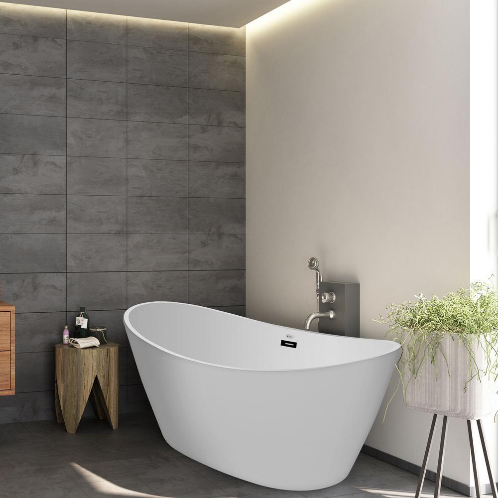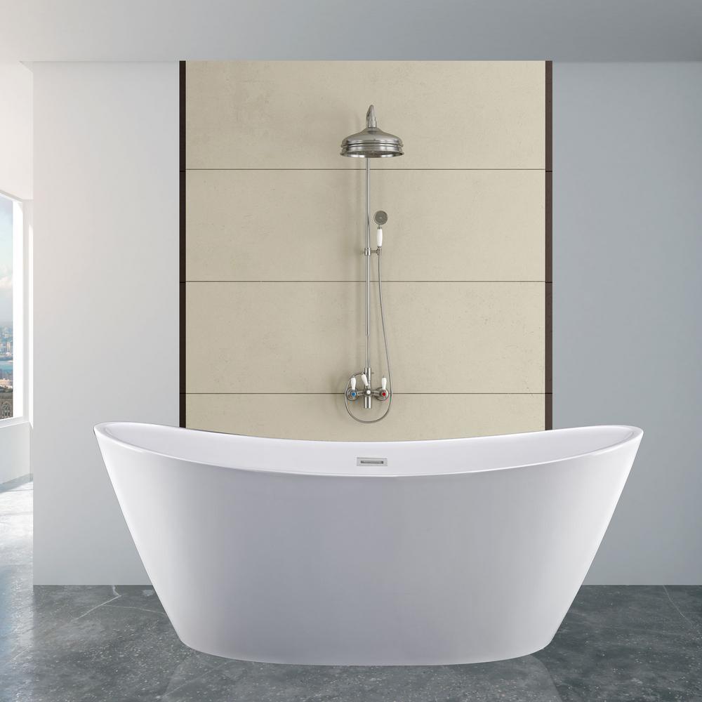 Come home and relax in your luxurious freestanding bathtub EMPV-FT1518 by Empava. From the serenity collection emerges the ergonomic pure-scape freestanding bathtub by Empava. Its design is as comfortable as it is stylish. The contemporary design and defined lines will complement any bathroom decor and make the room seem more spacious. The pure-scape stand-alone tub is ergonomically engineered and will comfortably hold your body, so you can soak in peaceful tranquility. Empava uses 100% white glossy acrylic (never any paint) reinforced with fiberglass in its pure-scape bathtub to ensure that the color is consistent throughout and never fades or loses its brilliance over time. Adjustable metal feet under tub for stability., Brushed nickel overflow and pop up drain pre-installed., Anti-bacterial surface with high gloss white finish. cUPC certified., Premium quality acrylic construction reinforced with fiberglass for strength and durability., Non-porous surface for easy cleaning., Easy installation., 1 person bathing. Empava bathtubs are as pleasing to the eye as they are comfortable to soak in. World-class modern designs and ergonomic features are incorporated into all of Empava's luxury tubs. From the finest selection of raw materials to the contemporary design, Empava bathtubs bring innovation and durability to create some of the highest quality, visually striking bathtubs in the world. Add the Empava modern freestanding bathtubs EMPV-FT1518 to your cart today .