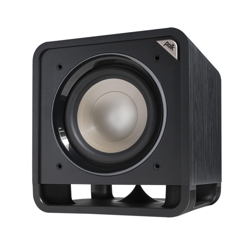 The Polk Audio HTS 10 in. Powered Subwoofer enhances home theater and music listening with powerful, deep bass. It features a long-throw Dynamic Balance 10 in. driver, patented Power Port technology and a state-of-the-art 200-Watt Class D amplifier. You can easily access controls for volume, low pass filter, and phase correction. Connect the HTS 10 subwoofer via LFE (unfiltered/low pass disabled) or stereo line-level RCA inputs.