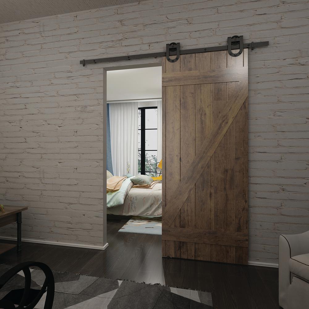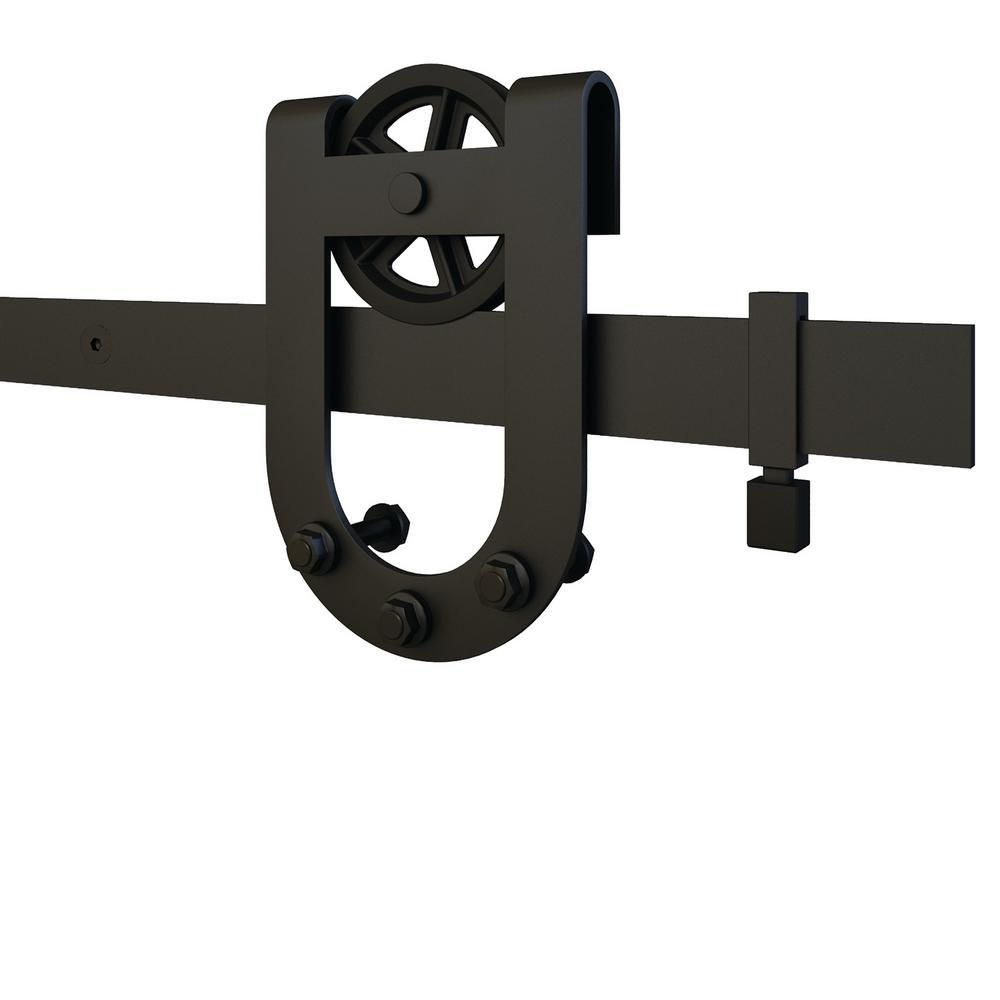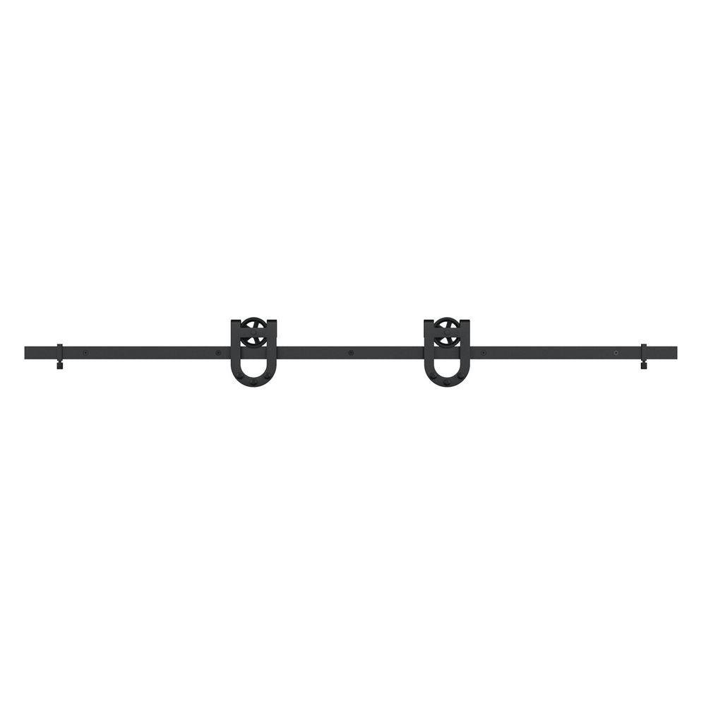 78-3/4 in. x 1-9/16 in. Black Steel Horseshoe Rail Sandy Sliding Door Hardware Kit