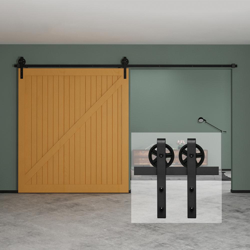 This sliding door hardware is made of high quality steel in high temperature fine black powder coated surface ensures anti-corrosion and years of beauty and longevity. The modern twist on the classic barn door not only saves space, it allows the ability to open up multiple rooms. Suitable for indoor decoration in kitchen, bedroom, dressing room, club, pub and so on, waterproof and rust resistant tract kit also a nice door accessory for barns, garages, stables, etc.
