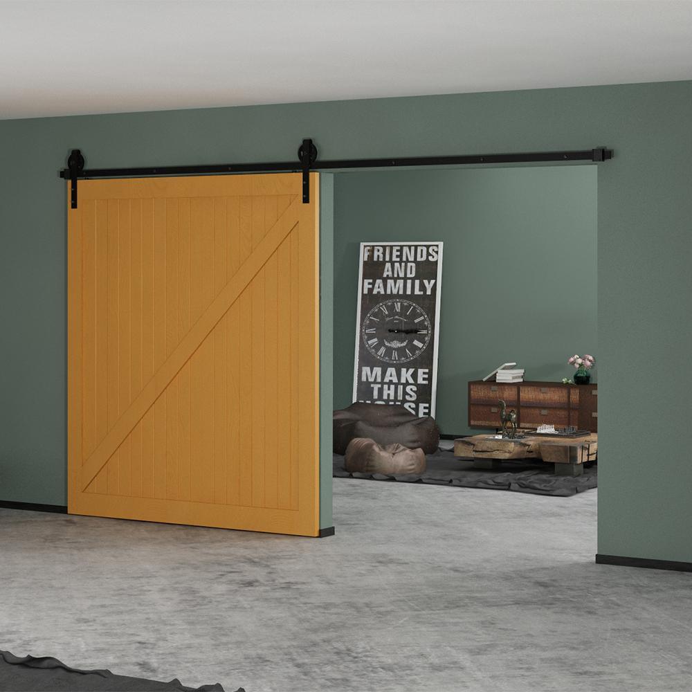 - Pre-install notice: only the hardware is for sale, doors are not included the hardware package has lag bolts for wooden wall/drywall/concrete wall our sliding barn door hardware kit is compatible with door thickness from 1-3/8 in. to 1-3/4 in. if you have a door trim, you would better put a header board that is as thick as the trim and then attach the rail to the header board you need to have at least 8 in. of space between the top of the door to the ceiling to accommodate the hardware we use 2 hangers to hold 1 door, for a single door kit, there will be 2 hangers in the package, for a double door kit, there will be 4 hangers, if you have a door that is either too wide or too heavy, then you can purchase additional hangers for that door
