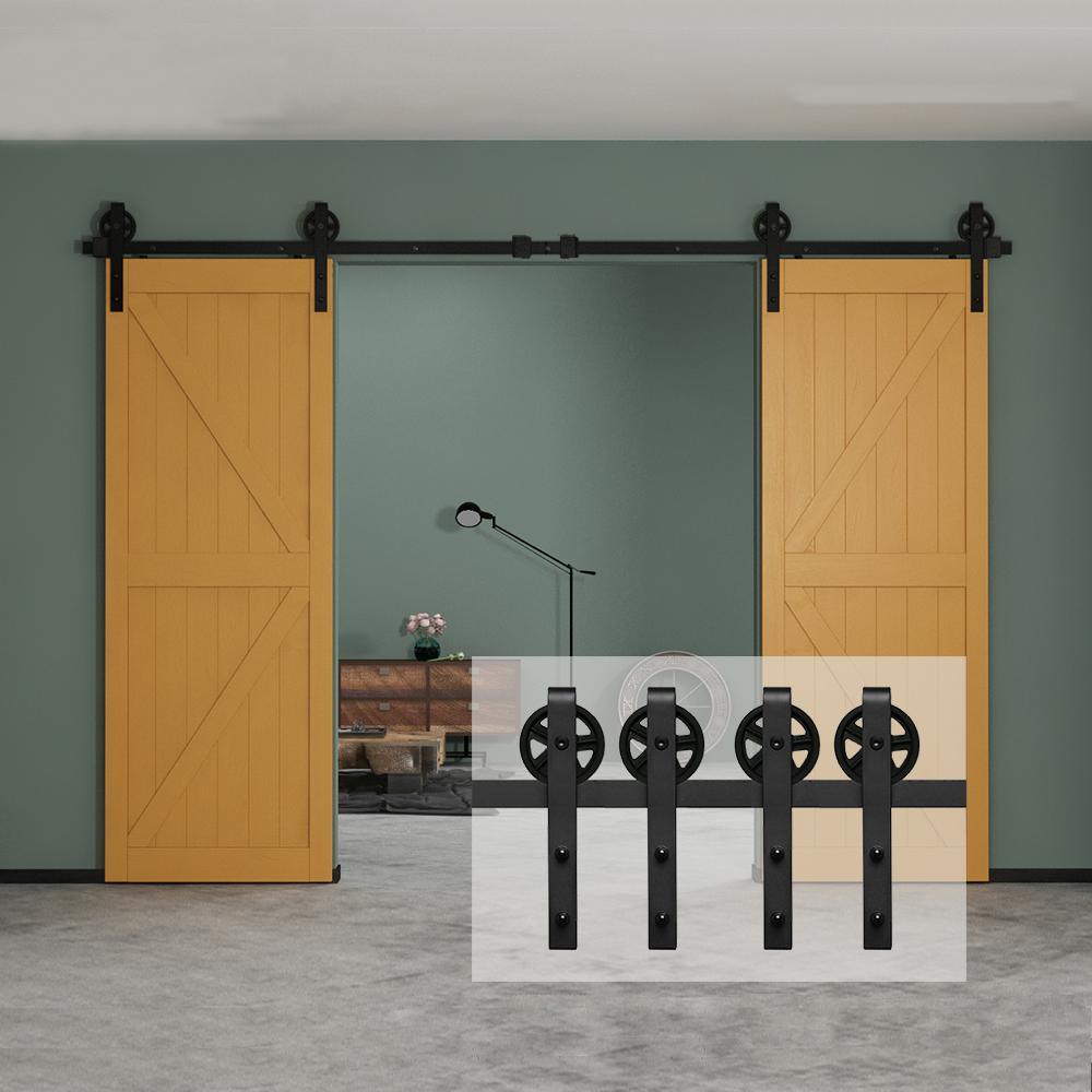 This sliding door hardware is made of high quality steel in high temperature fine black powder coated surface ensures anti-corrosion and years of beauty and longevity. The modern twist on the classic barn door not only saves space, it allows the ability to open up multiple rooms. Suitable for indoor decoration in kitchen, bedroom, dressing room, club, pub and so on. Waterproof and rust resistant tract kit also a nice door accessory for barns, garages, stables, etc.