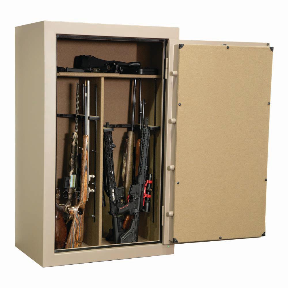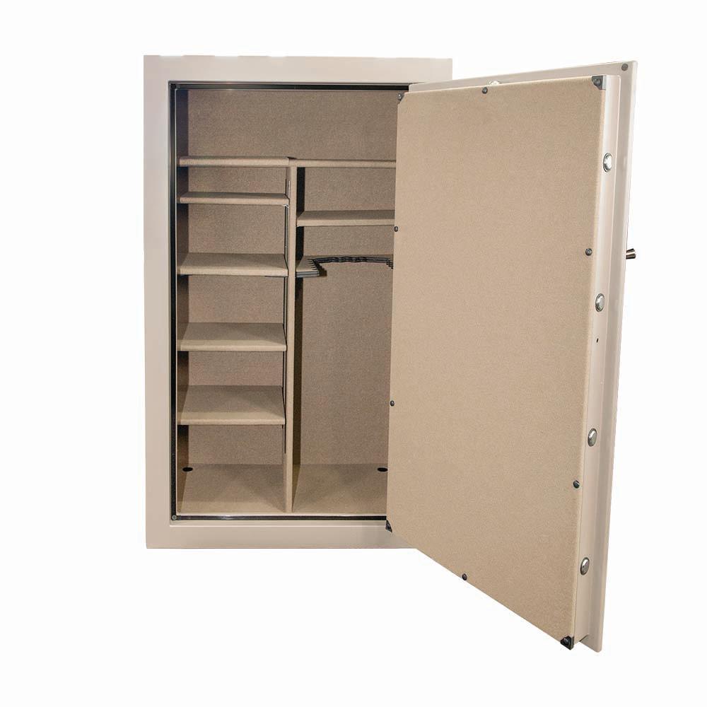 The Cadet 30 is the largest safe offered in the Cadet Series. It will hold up to 30 guns with a total of 10 locking bolts (6 active) and also boasts a 5-shelf adjustable interior with 2 gun racks. The tone on tone exterior and interior finish craft a beautiful balance while the 14-guage steel and 1.25 bolts keep your valuables and firearms secure. With a 30-minute fire rating (at 1400°F) the Cadet 30 provides additional protection should a fire occur. Larg(er) than the rest of the Cadet lineup, the Cadet 30 is the perfect solution for that special someone, or someone who is protecting their special someone, needing to upgrade to a bigger safe but isnt ready for The General Series quite yet. Backed by SURELOCK Security's Lifetime Replacement Program - the Cadet Series Gun and Home Safe offers superior, dependable protection to guard your treasured belongings safely and securely.