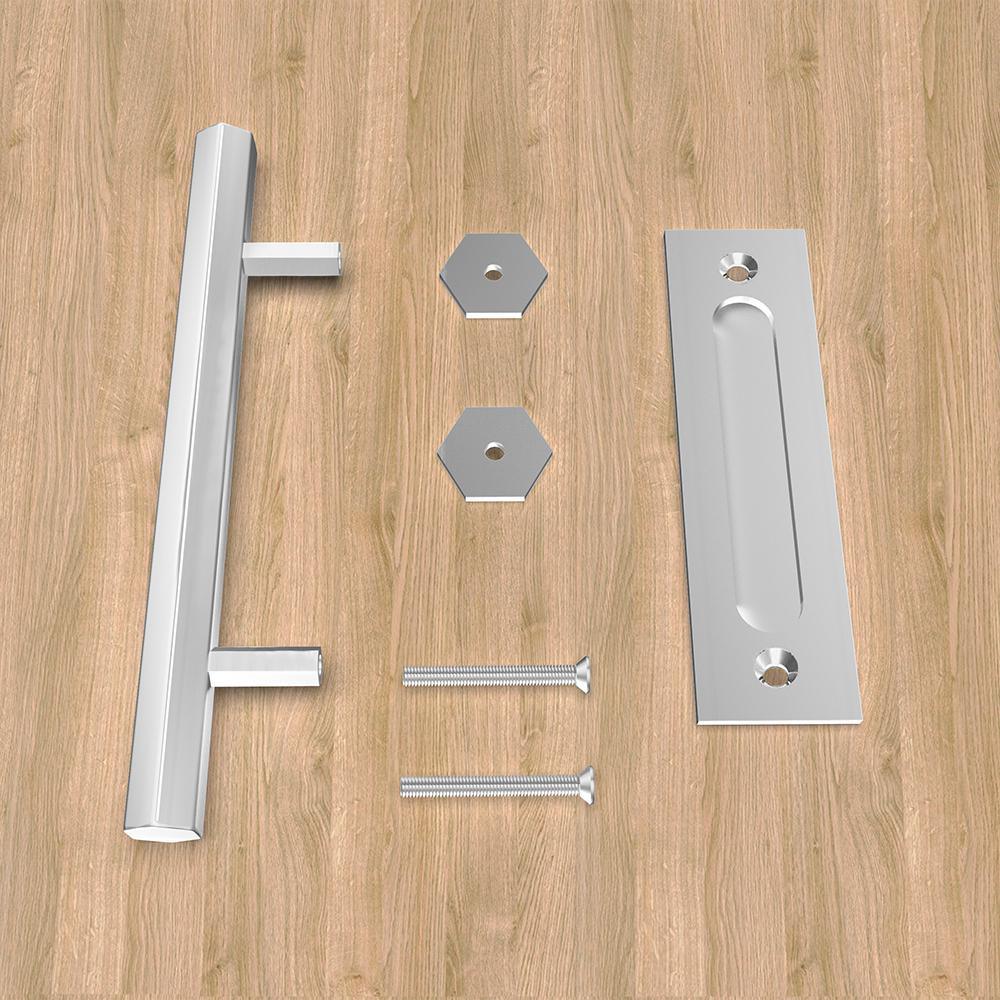 • Set handle on 2-sides of the door, inside flush pull and outside pulls handle, a perfect application for the sliding barn door