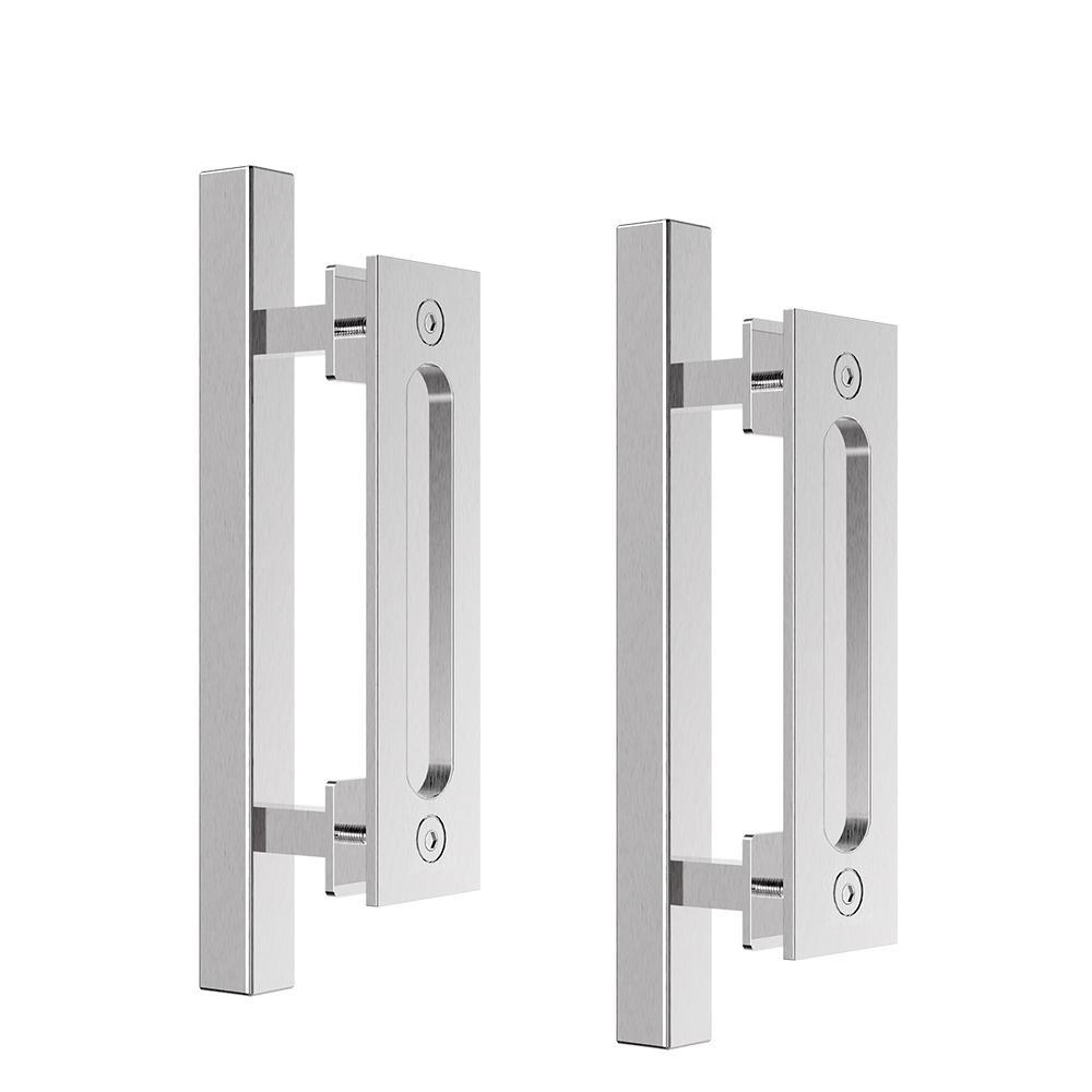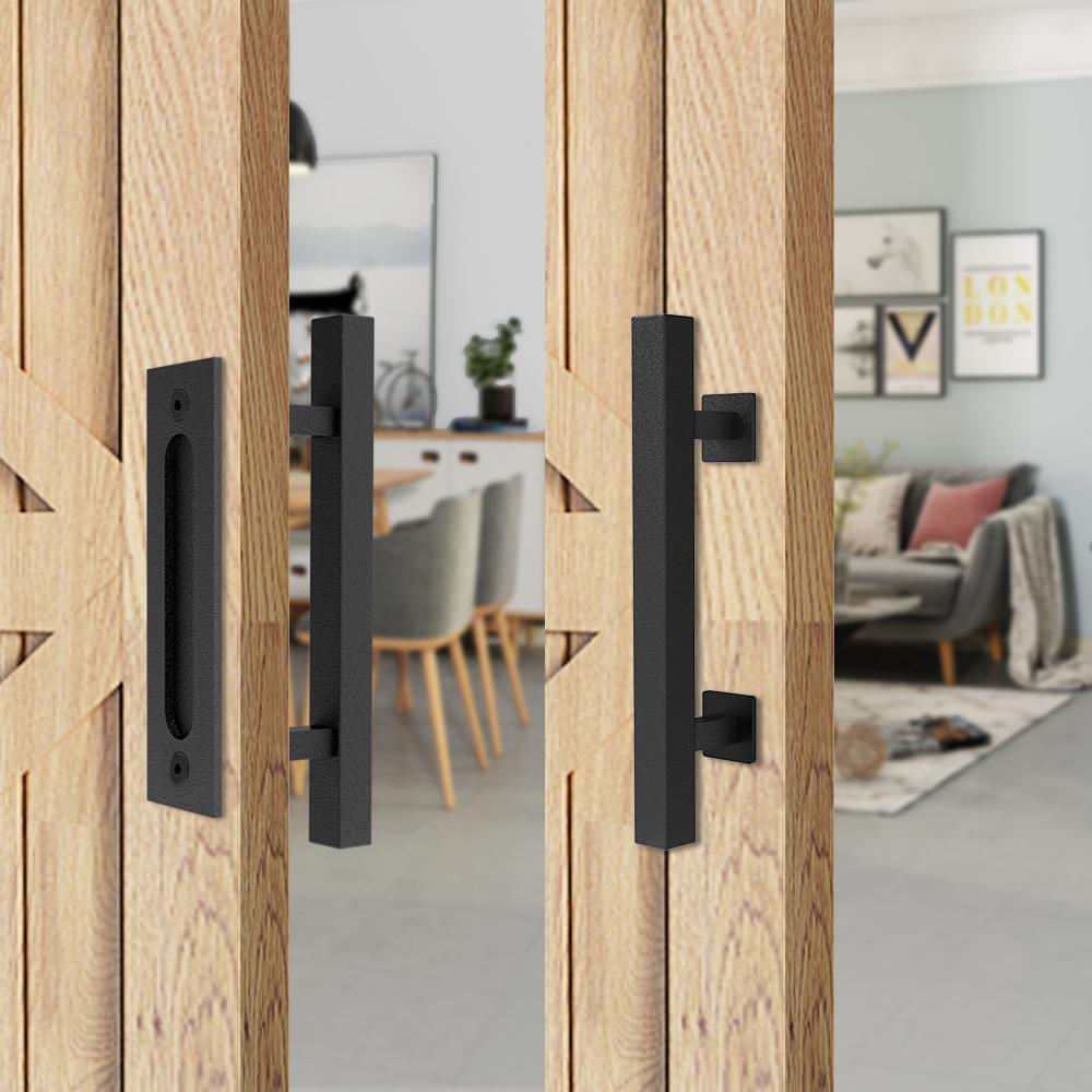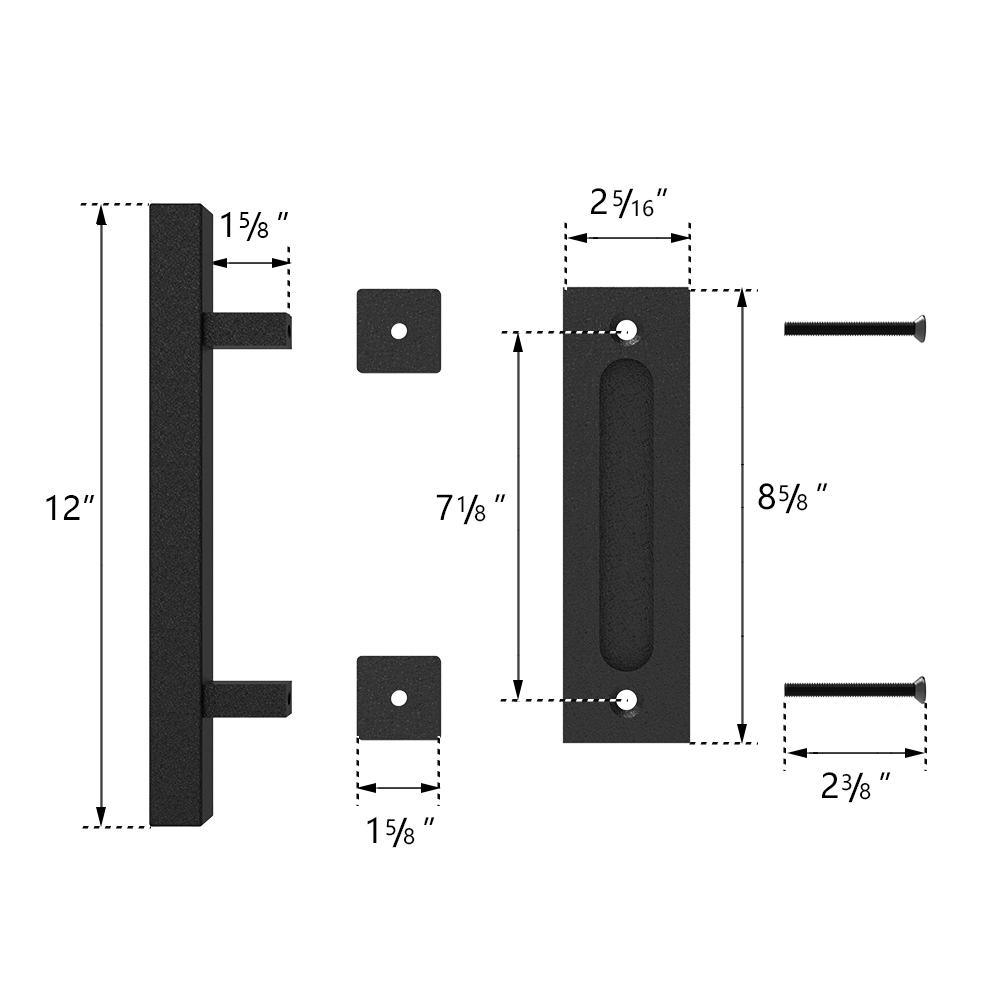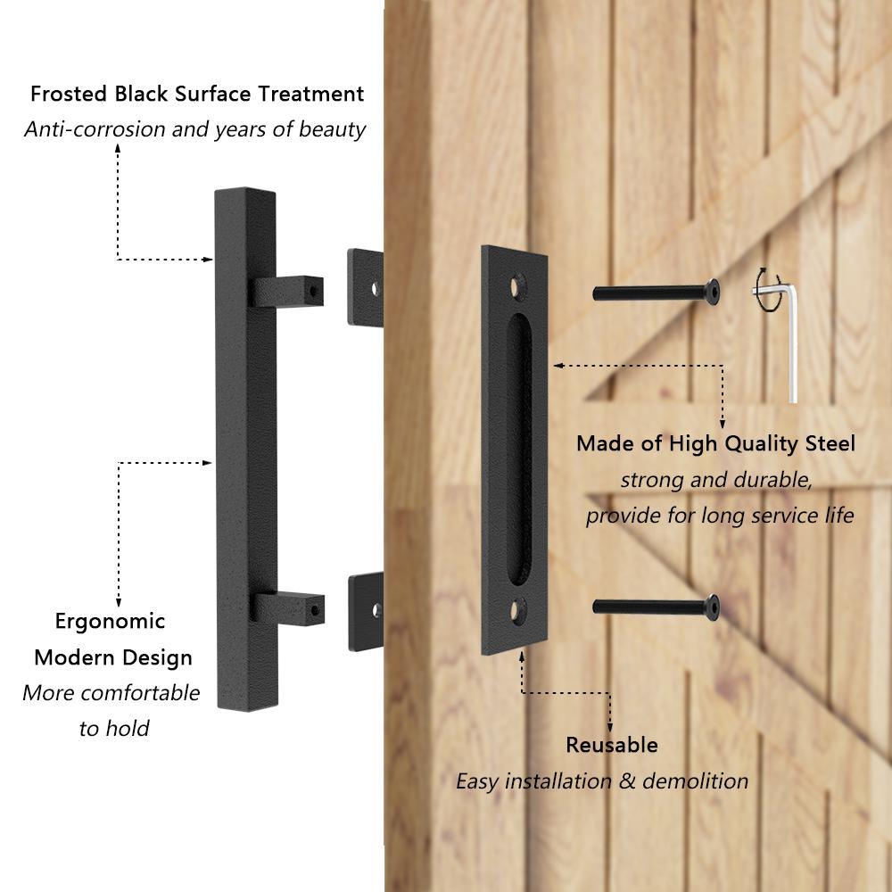 12 in. Black Square Pull and Flush Sliding Barn Door Handle Set (2-Pack)