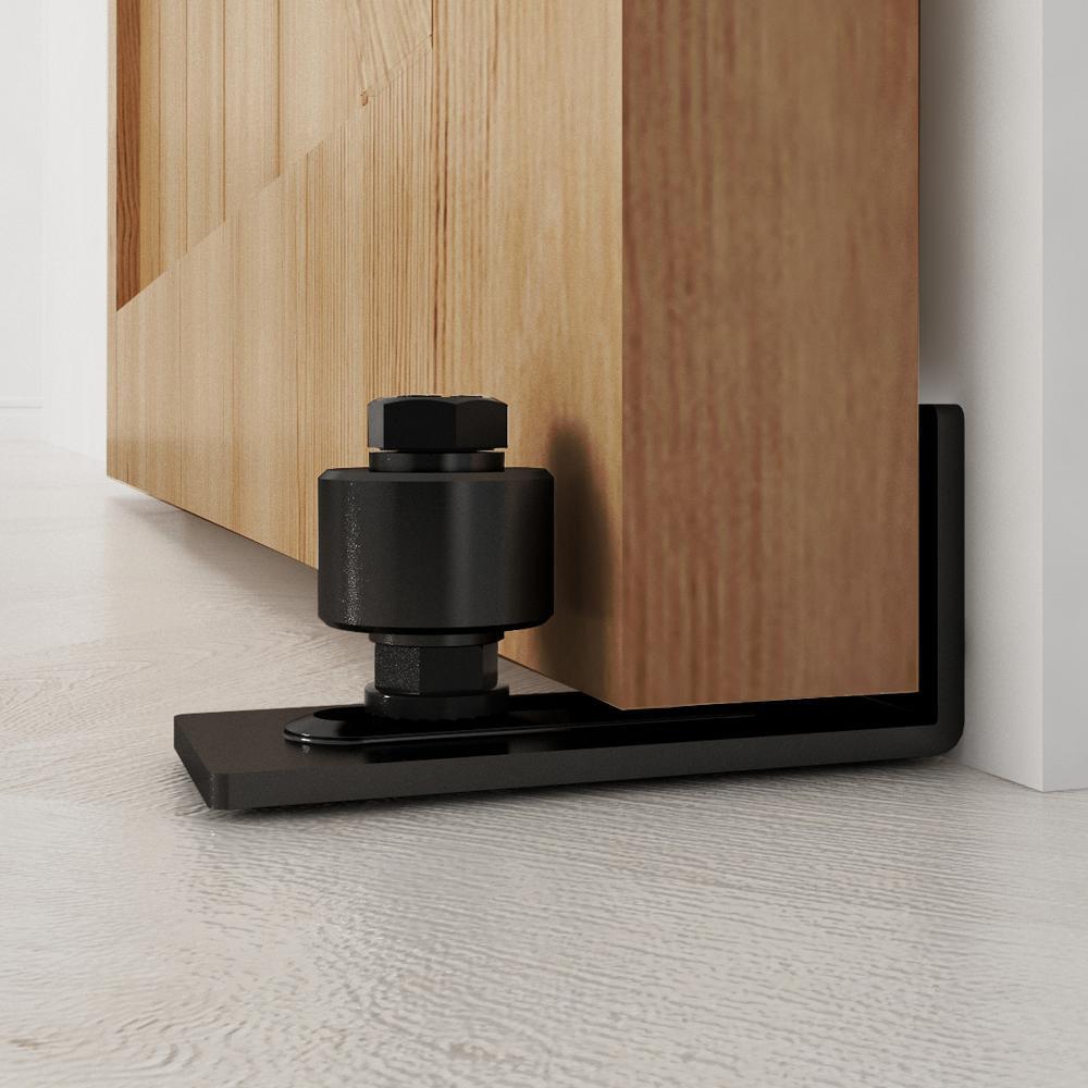 - Floor guide: fit door panel thickness: 7/8 in. to 2-1/8 in., adjust the 2 rollers to fit the door panel and then tighten the screw in the bottom of the floor guide so that the rollers will be fixed in the workable position
