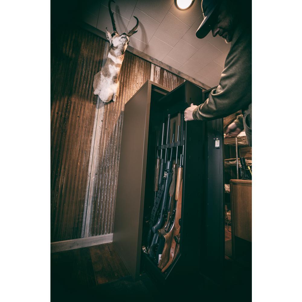 SURELOCK Securitys Single Constitutional Cabinet has a storage capacity of up to 7-long guns and was tactically and innovatively designed to allow for quick access, with additional security. Our patent-pending EasyAccess organization system is an industry-leading design that virtually eliminates the need to remove all stored items to access equipment stored in the back, or bottom areas. Our easily maneuverable, 7 long gun vertical pull-out gun rack is equipped with a smooth glide support roller, that has the ability to hold up to 150 lbs.. The high-density, adjustable barrel rest provides spacing ridges to prevent damage, allowing you to safely store your guns with scopes attached. No overlapping, no scratching, no stacking. Stay secure, stay organize and stay sure with SURELOCK. Backed by a 3-year warranty.