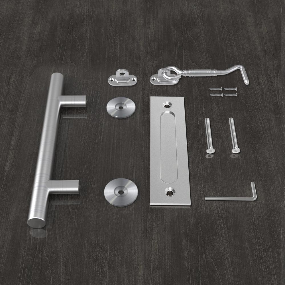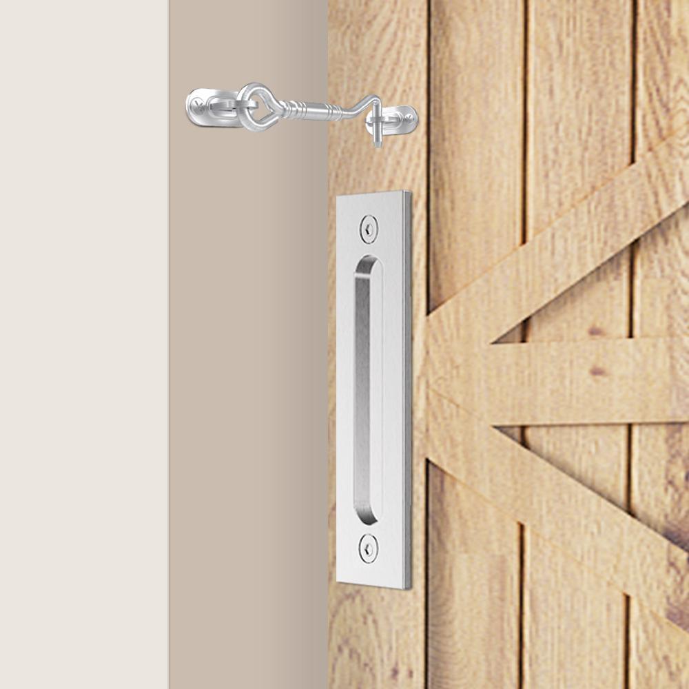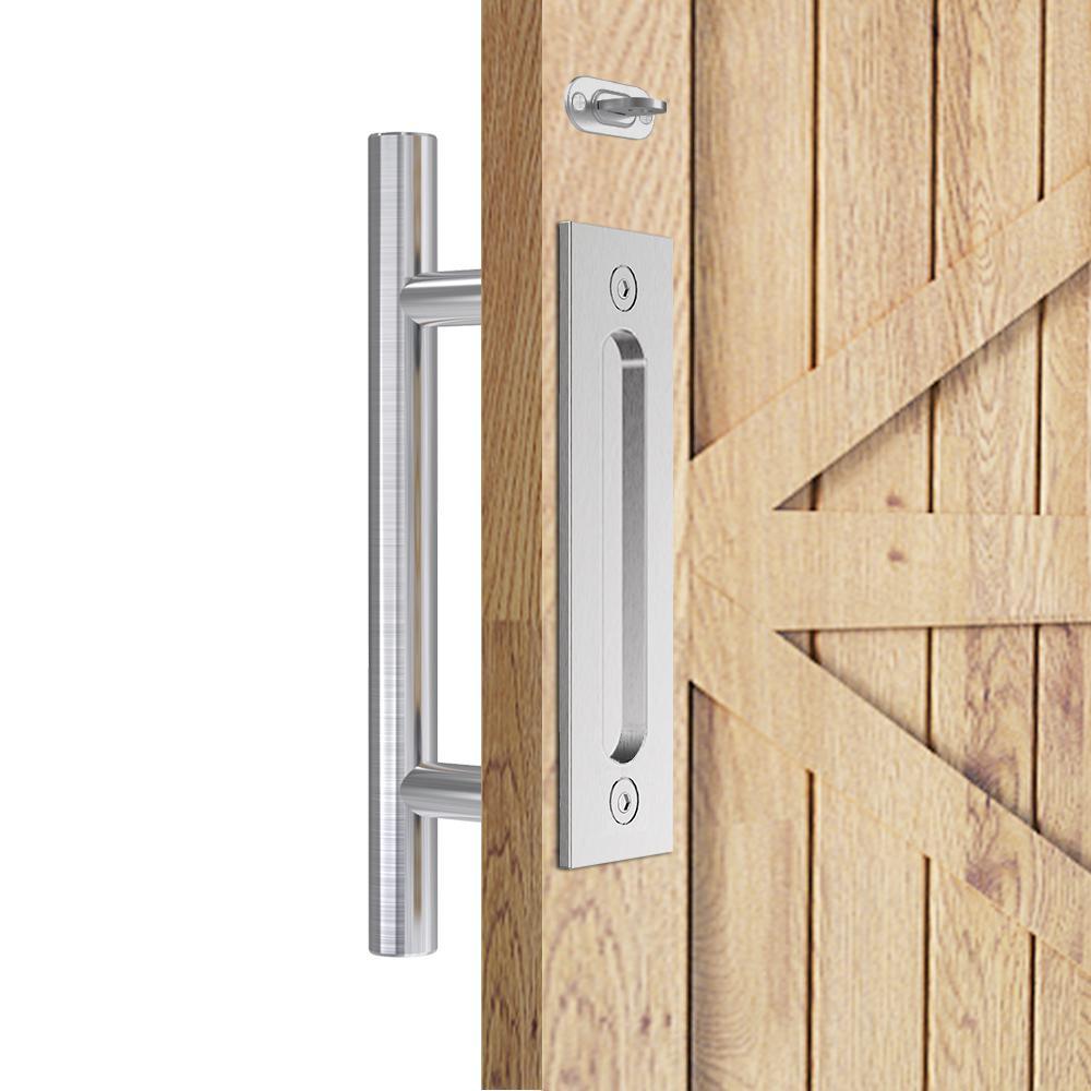 This barn door handle with flush plate and locking latch have been professionally upgraded with premium grade stainless steel for added durability and beauty. Modern design and elegant style that match most of home decoration and multiple use for many kind of doors. Simple installation is designed to fit on standard pre-drilled doors.