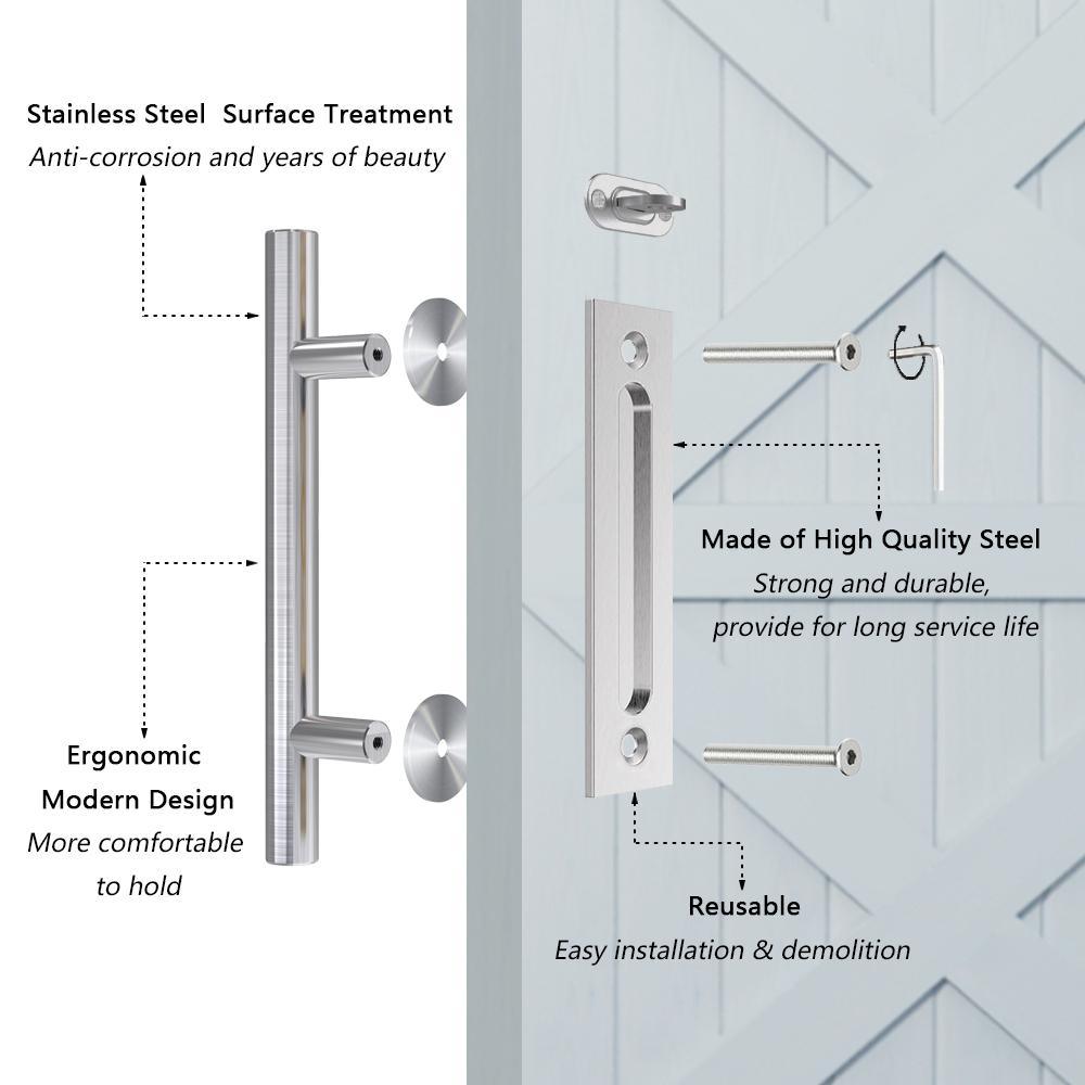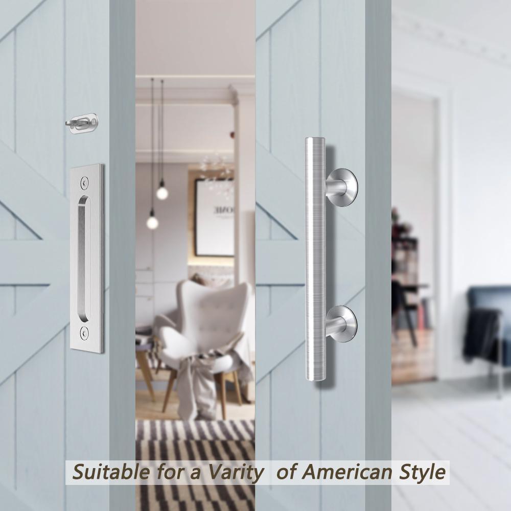 • Set handle on 2 sides of the door, inside flush pull and outside pulls handle, a perfect application for the sliding barn door