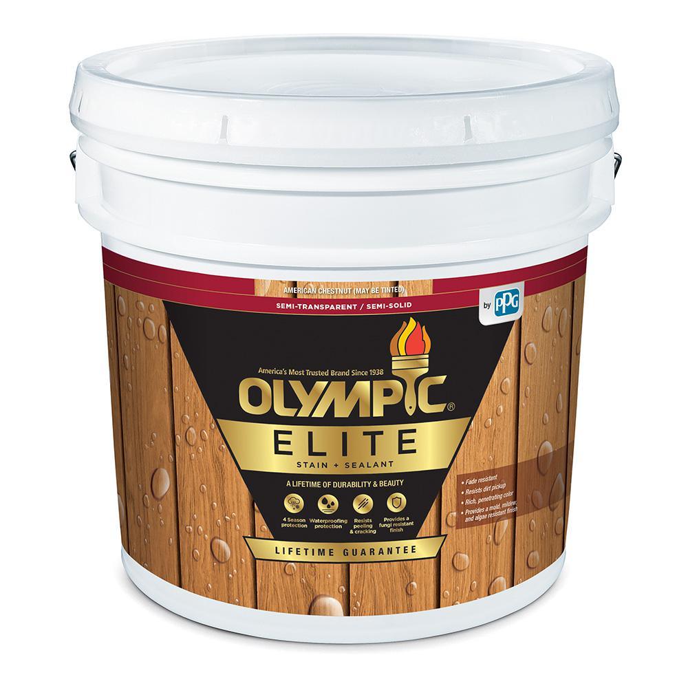 Olympic ELITE: A premium wood stain and sealant. This water based, semi-transparent wood stain adds color while still allowing the wood grain and texture to show. This super-premium exterior wood stain is formulated to protect and enhance the natural look of wood while providing protection and beauty through all seasons and provides a powerful mold, mildew and algae-resistant finish to your deck, fence. All backed by a lifetime guarantee. Recommended for use on any properly prepared exterior wood, including decks, fences, siding, railings, outdoor furniture and other wood surfaces.
