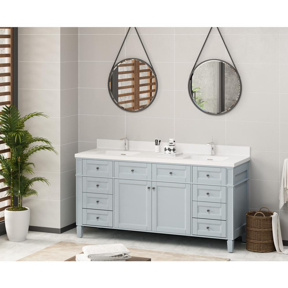 • Integrated dual sinks vanity top finished in matte white, the solid surface material is stain resistant