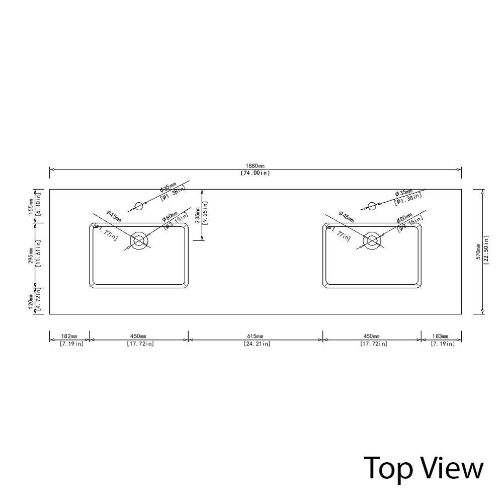 • Contemporary deep rectangular basin bowl design with built-in overflow drain, bowl size: 17.72 in. W x 11.61 in. L x 7.09 in. D Fits with 72 in. bathroom vanity.