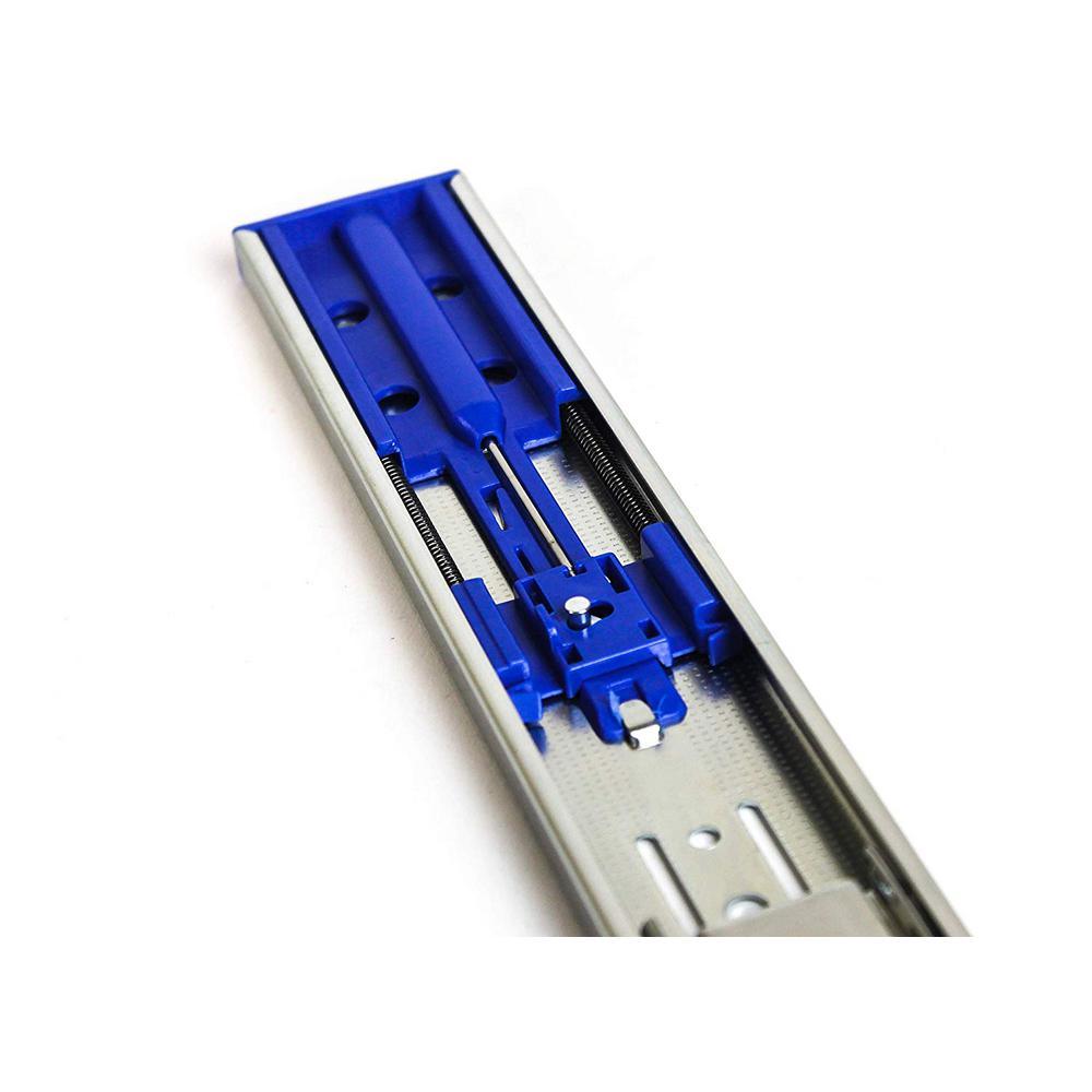 The rails are made from cold-rolled steel, in zinc, and have precision steel ball bearings. Full extension slides also telescope, allowing the full length of the drawer to clear the cabinet. Choose these when you need easy access to the rear of the drawer, as in a file drawer. Soft close features: Whether large or small, heavy or light, soft closing action keeps drawers from slamming closed. It adapts to various closing speeds and features overload safety to protect the system from damage over time. Self close functionality help to close drawers softly, safely and quietly. Preventing drawers from slamming shut, stopping damages to drawers and keeping items from shifting within the drawers. High load rating allows you to install those slides on any type of drawer.
