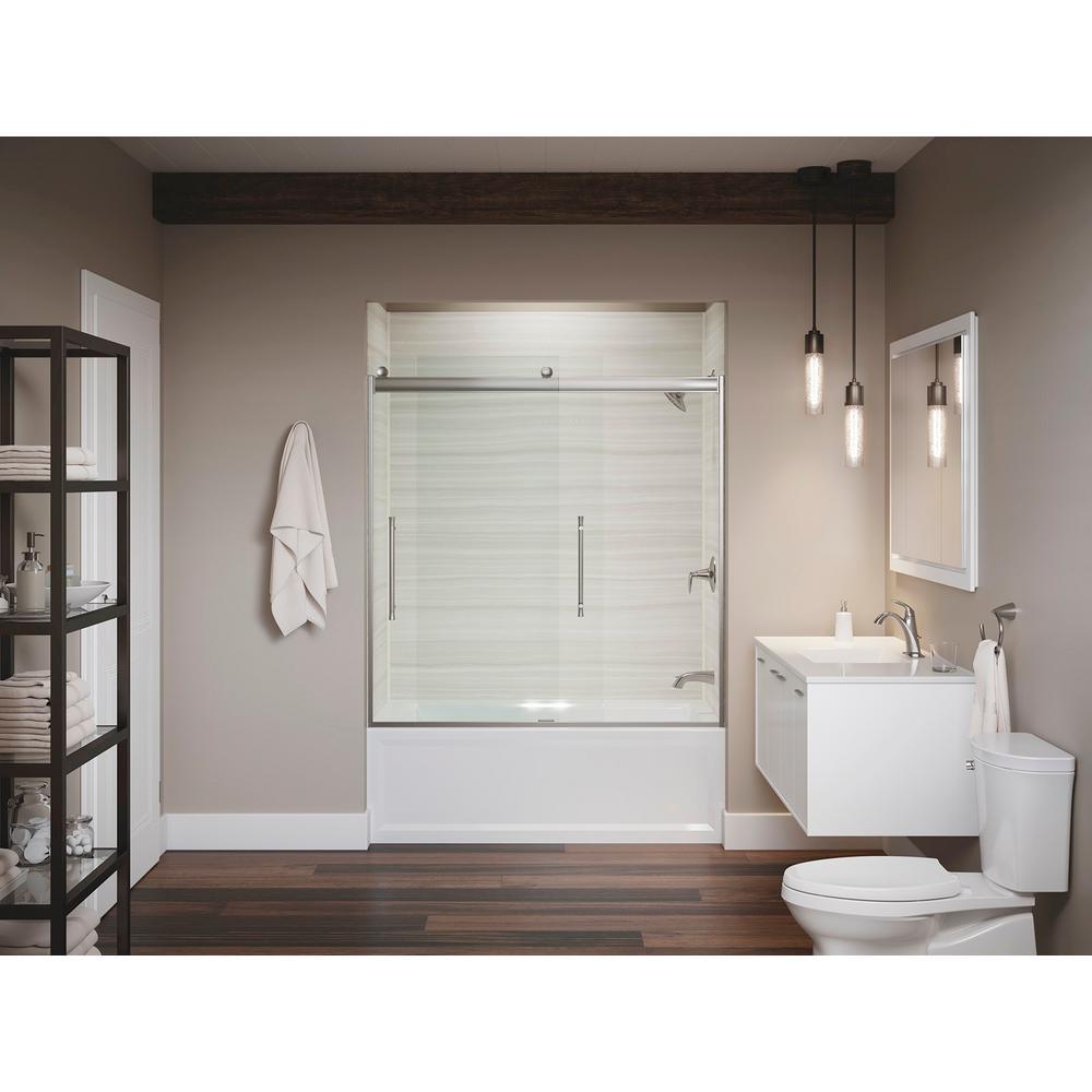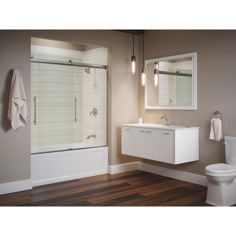 Bringing new technology and sleek style to the contemporary bathroom space, Elmbrook shower doors feature an innovative bypass system and roller design that provide an amazingly smooth, quiet sliding action for a difference you can feel. Elmbrook's unique design, including fully by passable glass panels, makes installation easier than ever and allows for adjustability while the door is hanging. Distinguished vertical handles complement Elmbrook's modern minimalist look, creating an open, inviting space for showering.