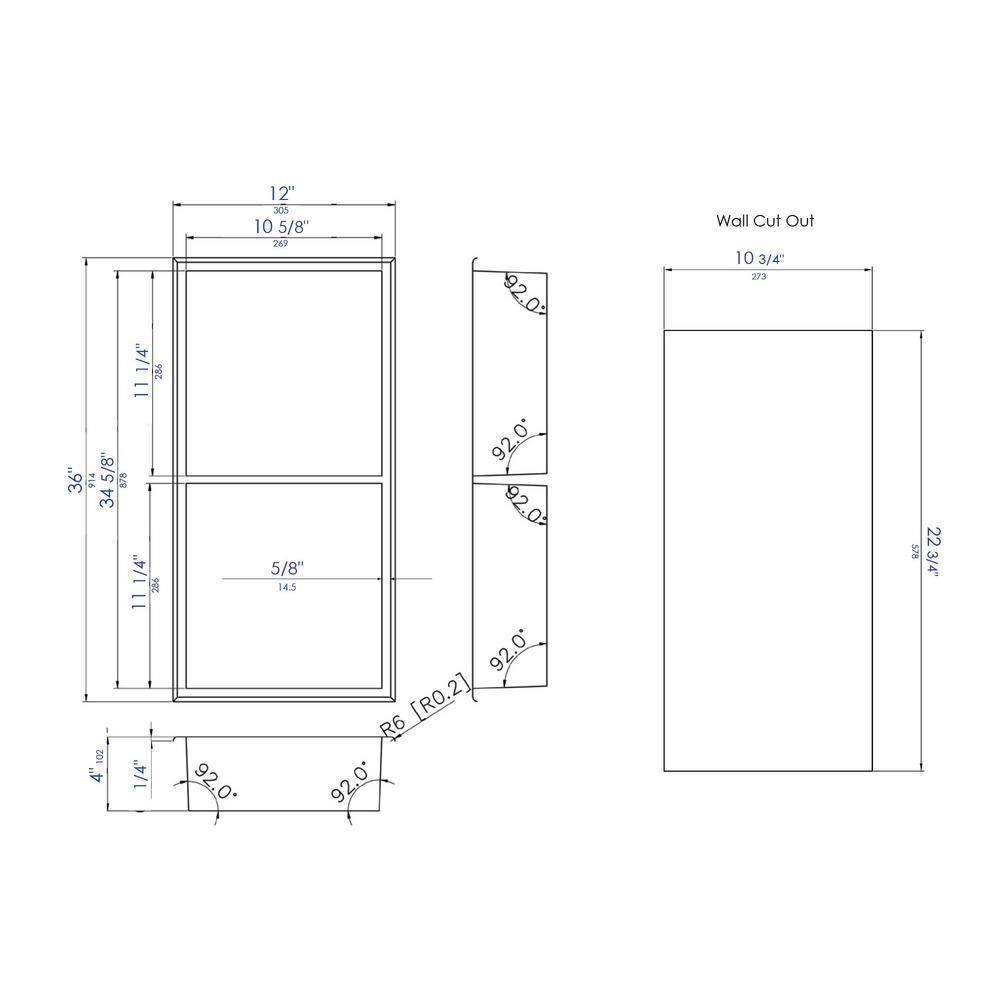 • Interior size of each shelf: 10-5/8 in. x 22-5/8 in. x 3-7/8 in., the wall cut out dimensions are 10-3/4 in. x 22-3/4 in.