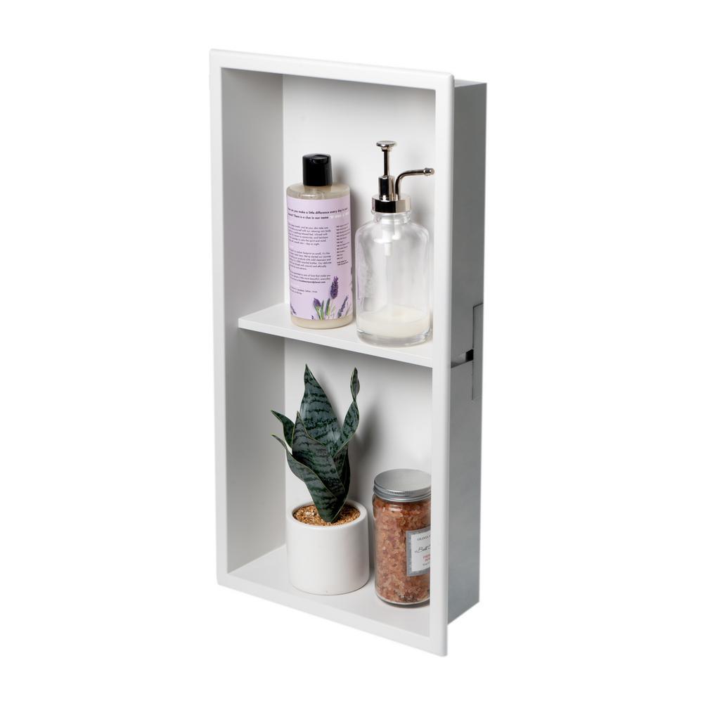 This ALFI brand stainless steel double shelf niche offers the practical convenience of recessed shelving anywhere in your home. The perfect space-saving solution for shower essentials, nik-naks, home decor, and more. With a variety of sizes and shapes to choose from, you can easily find a style to fit your design needs. Made from high-quality stainless steel material and finished with a matte powder coating, our niches are compact, easy to install, and offer a modern alternative to traditional shelving. Available in two stylish finishes to accommodate your decor; White or Black coated stainless steel.