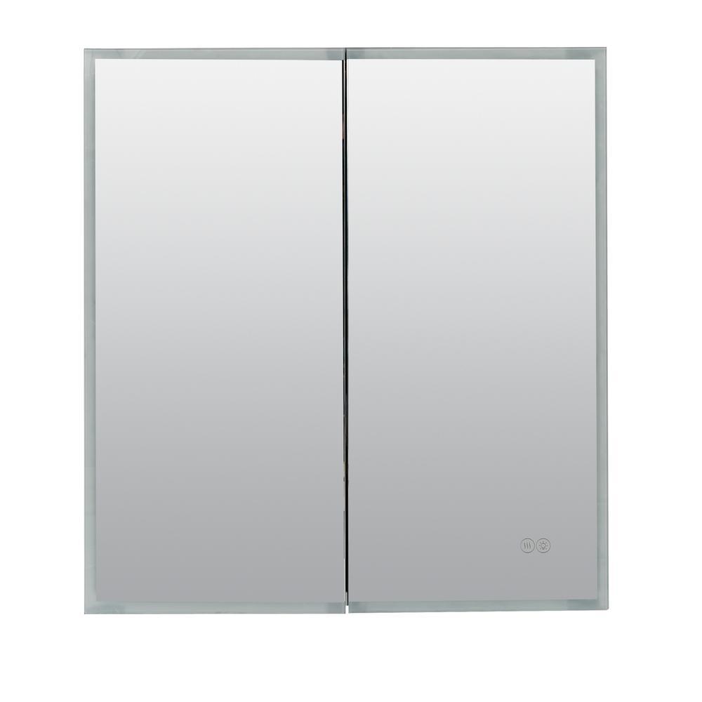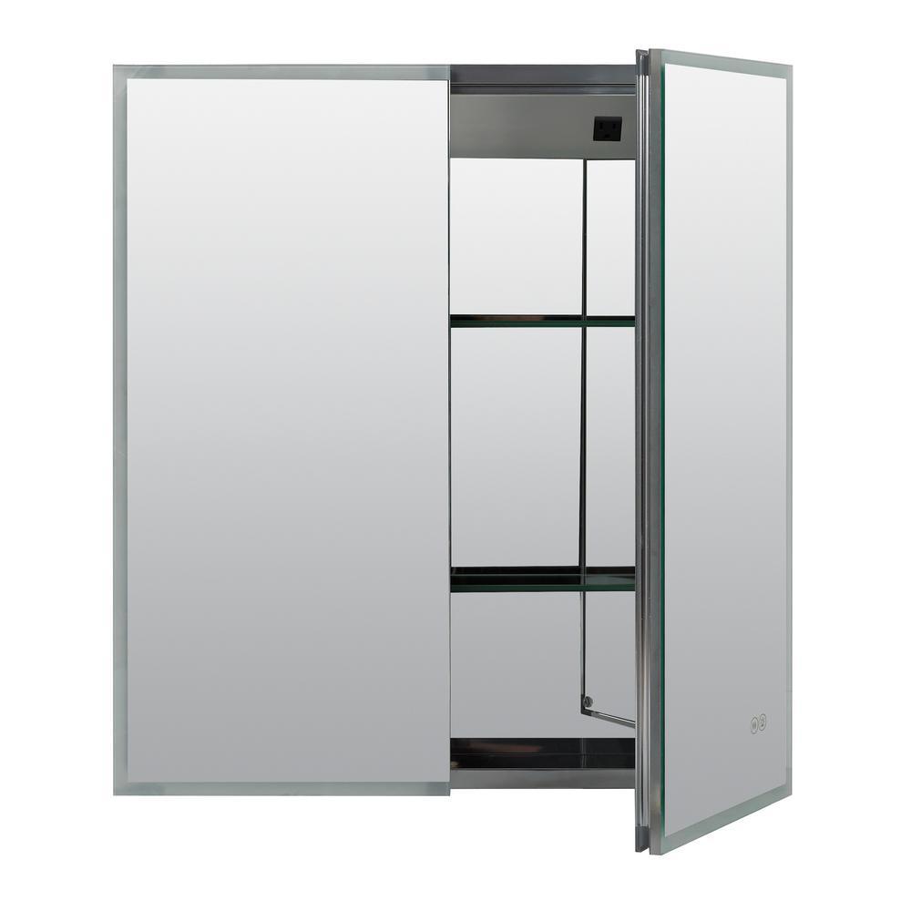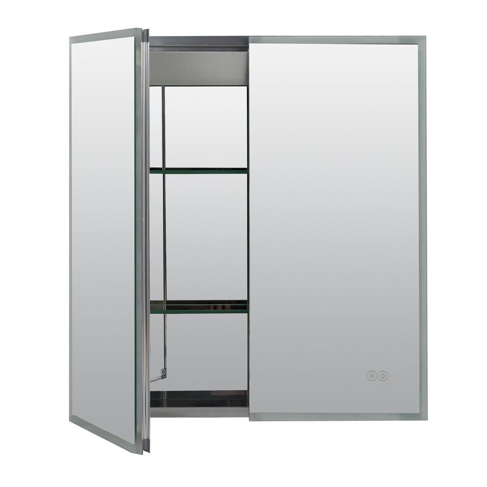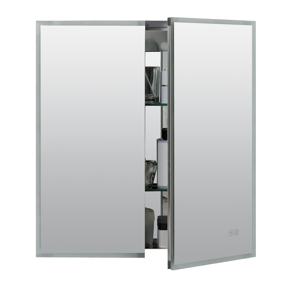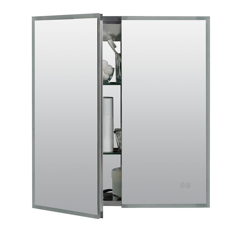 Modern innovation pairs with traditional storage and functionality in the Designer Series Edge-Lit LED Mirror Medicine Cabinet. With its rustproof aluminum body, mirrored side panels and interior adjustable glass shelves, this medicine cabinet has everything you'd expect in a premium cabinet. But there's even more to love about this medicine cabinet, including its innovative LED-illuminated acrylic border for shadow-free lighting around the mirror's entire perimeter. This Designer Series medicine cabinet also has a lighted on/off touch switch (with dimmer) located directly on the mirror, as well as a heated anti-fog demister pad (with its own on/off switch) that creates a fog-free area in the mirror's center. The cabinet is designed for your choice of either surface or recess mounting. Instructions are included for both choices. The cabinet a two-door "bi-view" opening. (The cabinet is also available in both a left-hinged door or right-hinged version).