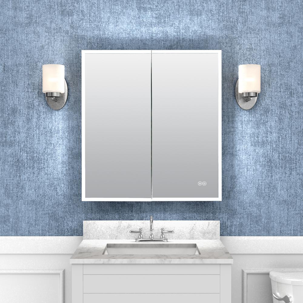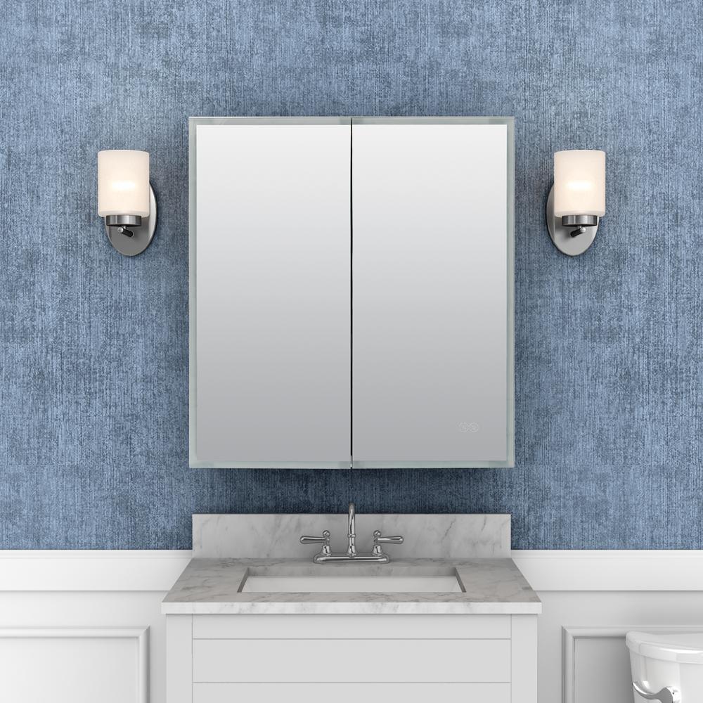 25.6 in. W x 27.6 in. H Designer Series Home Edge-Lit Framed LED Mirror Medicine Cabinet in Aluminum, Bi-View
