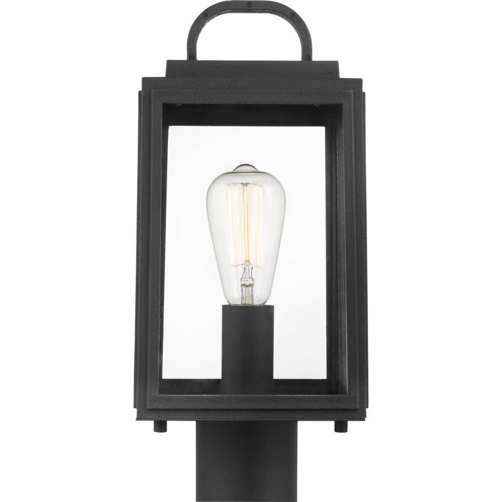 Partner timeless elegance with a pinch of coastal vibe with this post lantern. A beautiful black square frame crafted from corrosion-proof material features a half loop on top of the structure. The light fixture's clear glass panes allow the lantern to complement other farmhouse and coastal decor for an overall beautiful, welcoming look.