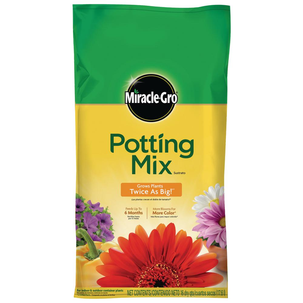 Your plants want to show off. Give indoor and outdoor container plants the right ingredients to grow bigger and more beautiful with Miracle-Gro Potting Mix. Our specially formulated mix feeds for up to 6-months for more blooms and more color. Use with indoor and outdoor container plants. Grows Plants Twice as Big versus unfed plants.