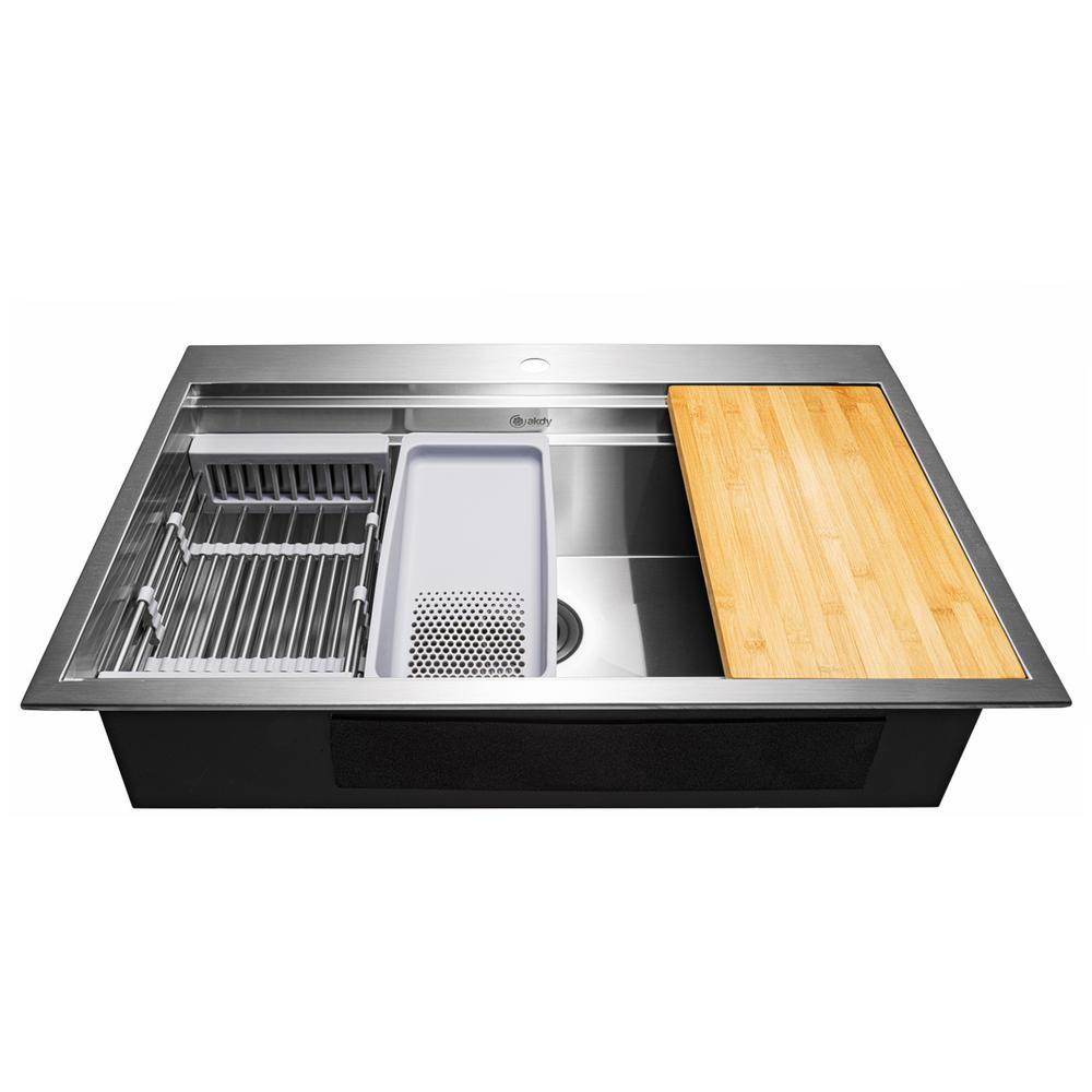 This Handmade Workstation Ledge Stainless Steel Sink with Faucet combo is revolutionary to say the least. This Workstation Sink with integrated ledge that allows you to slide accessories across the sink to personalize the space. You get all of the beauty of a designer stainless steel sink while meeting your everyday kitchen needs. It is as functional as it is fabulous. We designed this elegant stainless steel kitchen sink to streamline your workflow by providing you a workstation that has everything you need!