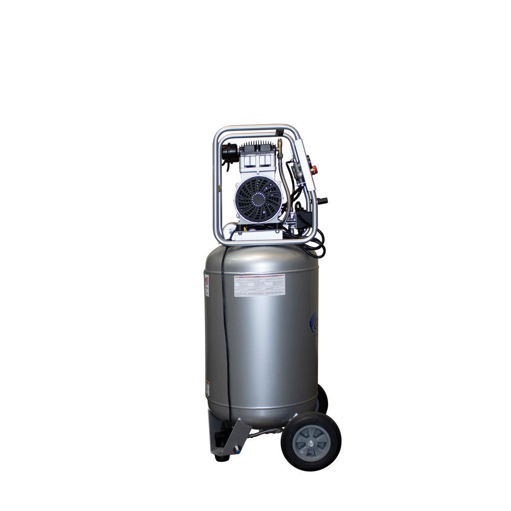 The California Air Tools 20020AD Ultra Quiet and Oil-Free Air Compressor is designed to be 1 of the quietest2.0 Hp air compressors in the industry having only 70 decibels of sound. The Powerful 2.0 HP motor operates at only 1680 RPM creating less noise and less wear. The SP Series of Ultra Quiet Air Compressor Motors have been designed to increase duty cycle and allow for longer continuous run times. The Oil-Free Dual Piston Pump System is engineered for high performance and durability. TheCAT-20020AD Air Compressor has an Oil-Free Dual Piston pump designed to have a life cycle before wear of3000 Plus hours. The Oil-Free pump allows for use in a variety of temperatures(cold starts) and uneven terrains (no oil in the pump). The Easy Start Valve feature allows for a easier start up using less starting amps. The Easy Start Valve releases a small amount of air from the pump at start up to produce a no-load condition allowing the motor to spin freely. This no-load start up requires less amps for a easier start up in cold temperatures. The large 20 Gal. Steel Air Tank is designed to store more air for higher demand air tools such as spray guns and sanders. Prefect for the shop or garage. The factory installed California Air Tools EZ-1 Automatic Drain Valve has been designed to eliminate manually draining your air compressor air tank. The 2 wheels makes moving this air compressor very easy. Designed for the person looking for Power, Air Flow with at Least 30% Less Noise.
