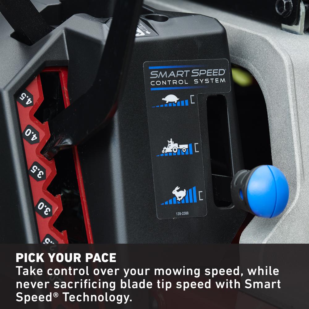 - Pick your pace, easier to handle than ever thanks to Toro's Smart Speed technology, which allows you to have total control over your mowing speed, ground speeds range from 7 MPH in mow mode, 5.5 MPH in tow mode and 4 MPH in trim mode
