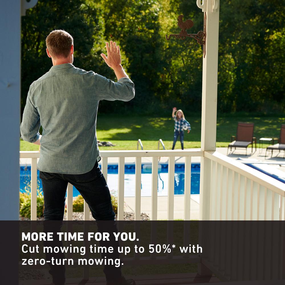 - More time for you, cut mowing time up to 50% with zero-turn steering, you'll be amazed how quickly the 54 in. deck works around obstacles, giving you a gorgeous lawn and more time to enjoy it with family and friends