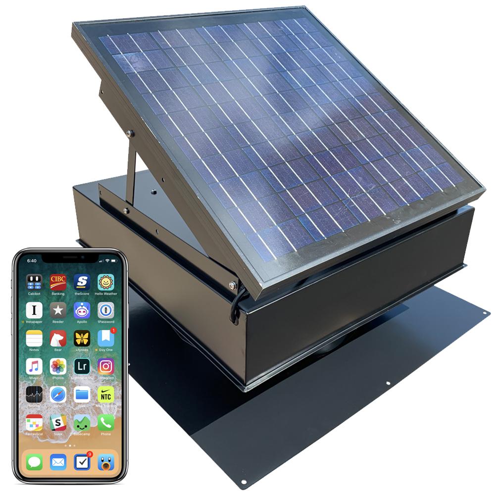 The Remington Solar 40-Watt Wi-Fi Solar Ventilation Fan is completely powered by free solar energy. This American-designed fan is designed to reduce attic temperatures and remove destructive moisture, thus making your home more comfortable and reducing the load on your HVAC system and lowering your electricity bills. In the Winter, this fan reduces the risk of ice-damming. Our stylish, powder coated steel, 40-Watt fan will effectively ventilate up to 3,400 sq. per feet of attic space at up to 1,875 CFM. This is the least expensive high-quality fan, feature-for-feature, available. Each fan comes with a proprietary Wi-Fi humidistat and thermostat. Simply download the SolaCom app from iTunes or Google Play and you'll be able to adjust your fans thermostat and humidistat settings. This ultra-powerful Wi-Fi hub has been 4-years in development as it effectively controls temperatures and moisture in your attic and house. This is the most sophisticated and powerful residential solar attic fan on the market. Life-time non-transferable limited warranty on parts and manufacturers defects. Parts only.
