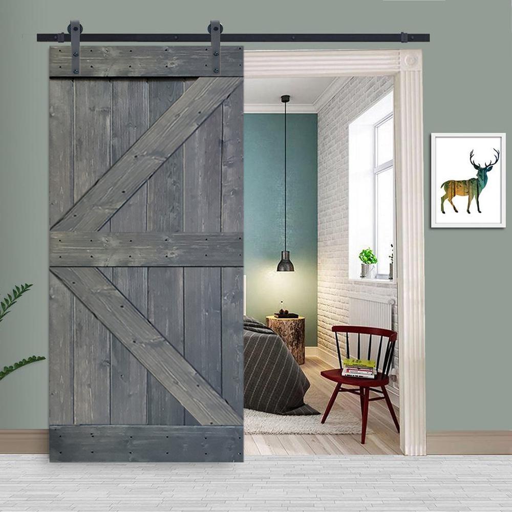 K Series 36 in. x 84 in. Gray Stained Knotty Pine Wood Interior Sliding Barn Door with Hardware Kit