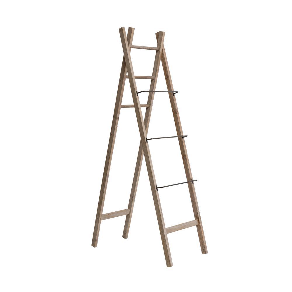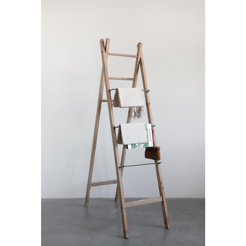 71 in. H Brown Decorative Wood and Metal A-Frame Ladder