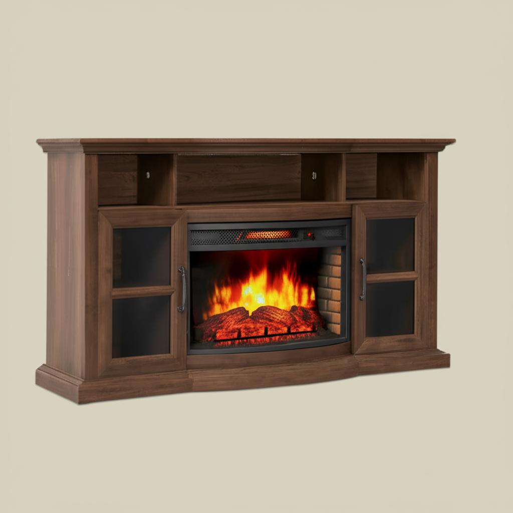 - Multi-Functional Design: Includes shelves for storage, window-pane cabinets, and a mantle that supports TVs up to 60 inches.