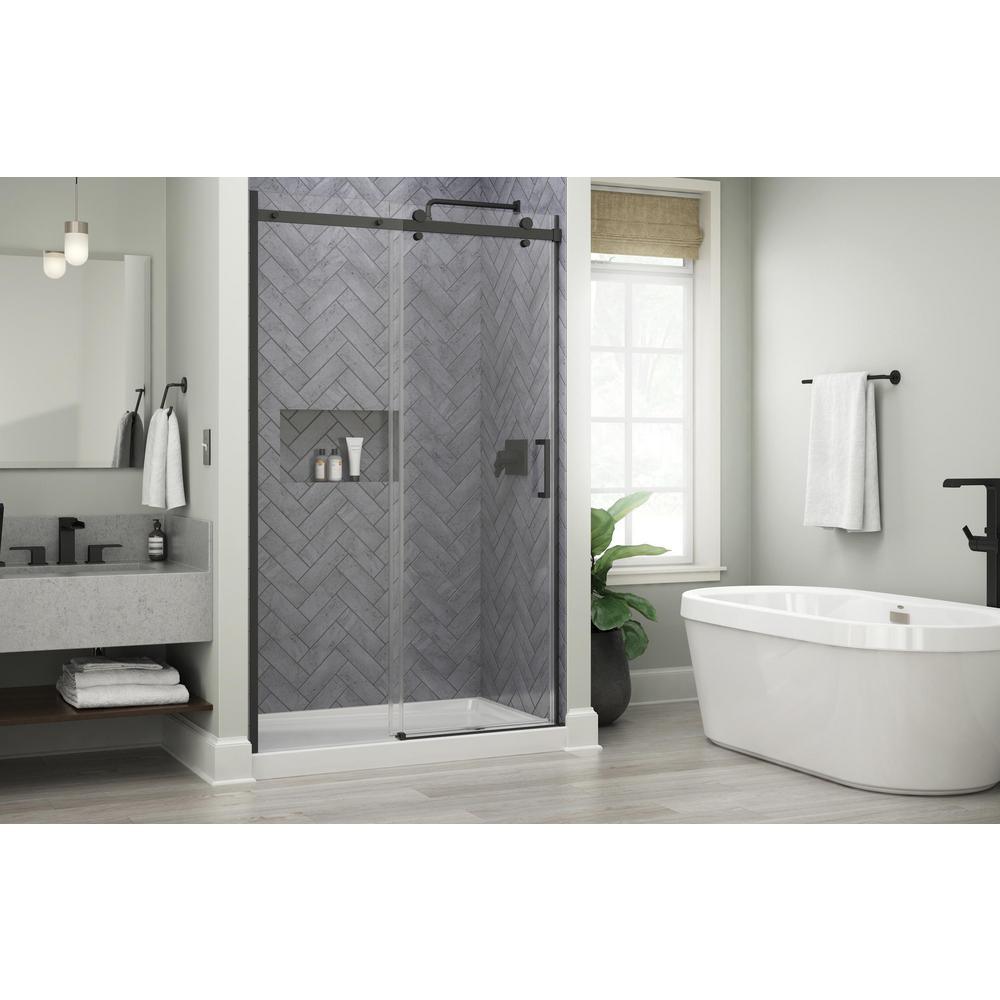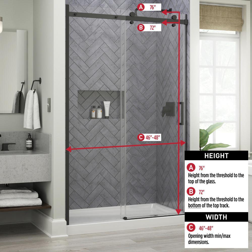 Commix 48 in. x 76 in. Frameless Sliding Shower Door in Matte Black with 5/16 in. (8 mm) Clear Glass