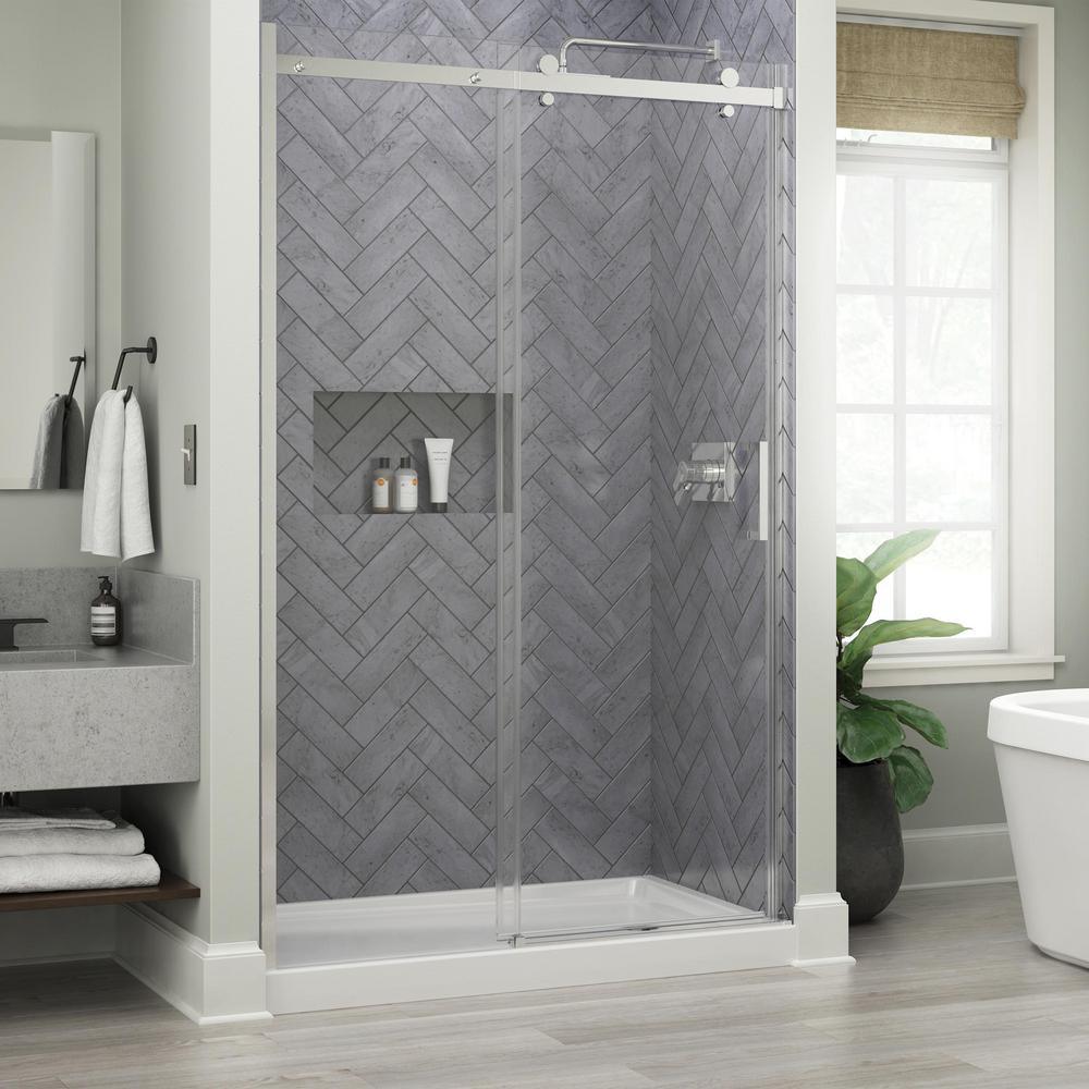 Whether you're looking for a moderate DIY project or working on a bathroom remodel, upgrading your bathroom is easy with Delta's Commix shower door. This frameless shower door features premium 5/16 in. (8 mm) SpotGuard treated glass and an exposed roller to achieve an trendy, barn door aesthetic. Install your door with confidence knowing the Commix frameless shower door is backed by a 5-year limited warranty. Customer service is a priority at Delta so all Delta shower door top tracks, bottom tracks, side jams and seals are covered by Delta's DOOR (Don't Overreact, Order Replacements) Program.
