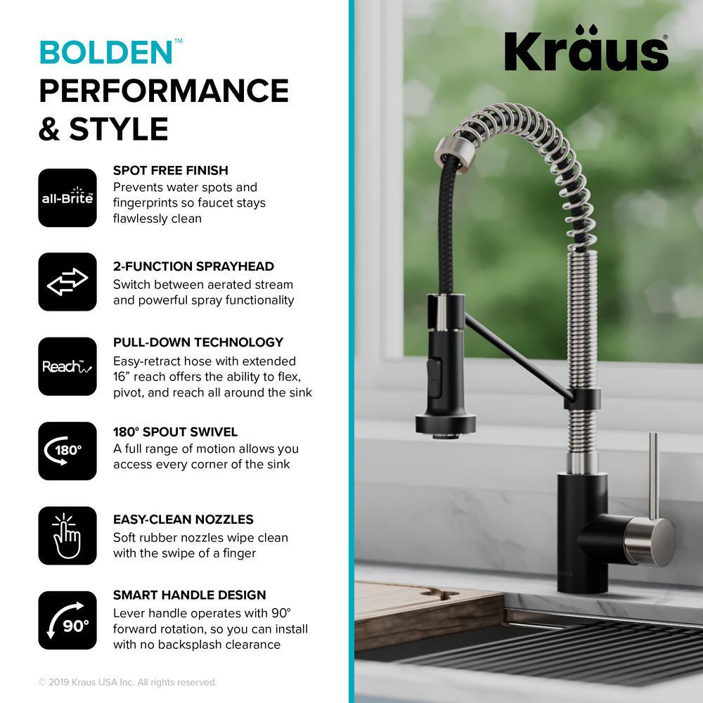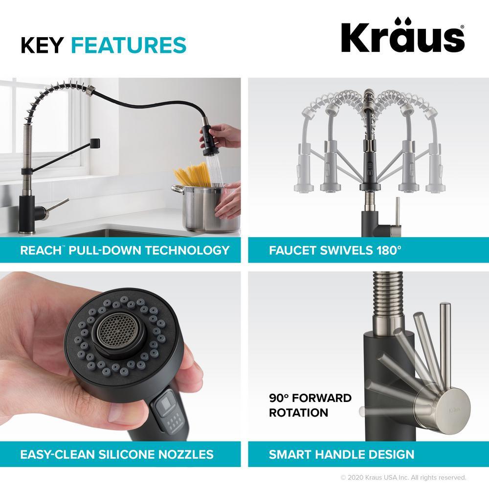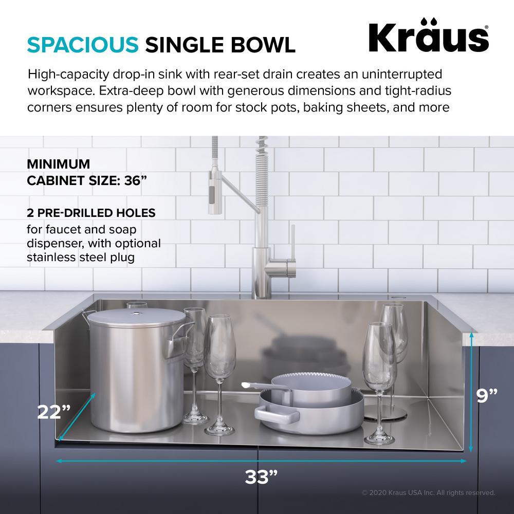 Designed with a right off-set drain, straight walls, and tight-radius corners, the Loften high-capacity stainless steel sink will add a contemporary feel to your kitchen. Convenient dual mount configuration allows you to install it as an undermount or top mount with any type of kitchen counter. Handcrafted from high quality T304 stainless steel with gently sloped bottom and creased channel grooves that allow for superior drainage. Comes paired with a commercial style pull-down faucet with 16 in. reach for a cohesive look and optimum efficiency