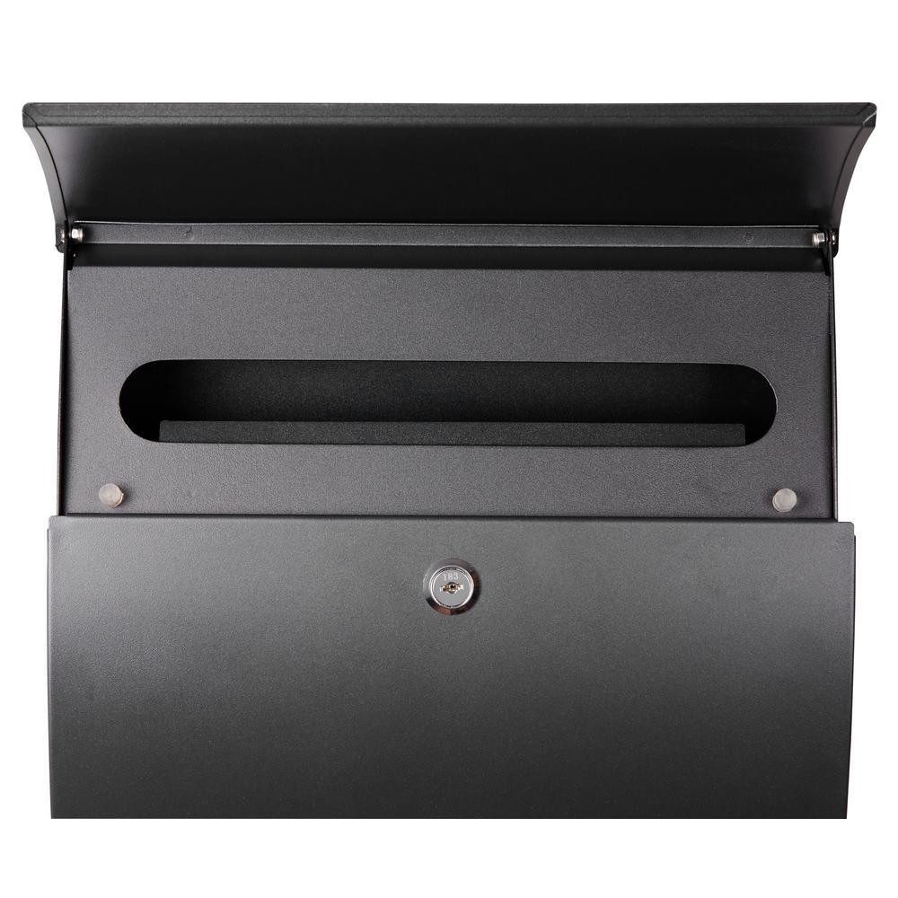 The contemporary locking mailbox by PRO-DF will protect your mail and your identity. It features a mail slot on the top and a locking front panel for an easy mail access. This mailbox is made of durable galvanized steel to avoid corrosion. The powder coated paint will preserve its finish year after year, even under the harshest weather conditions. The contemporary curved design will bring a stylish touch to your entry. Extra-large size mailbox: perfect for large envelopes, confidential and legal documents, small parcels. Mounting hardware and 3 keys are included.