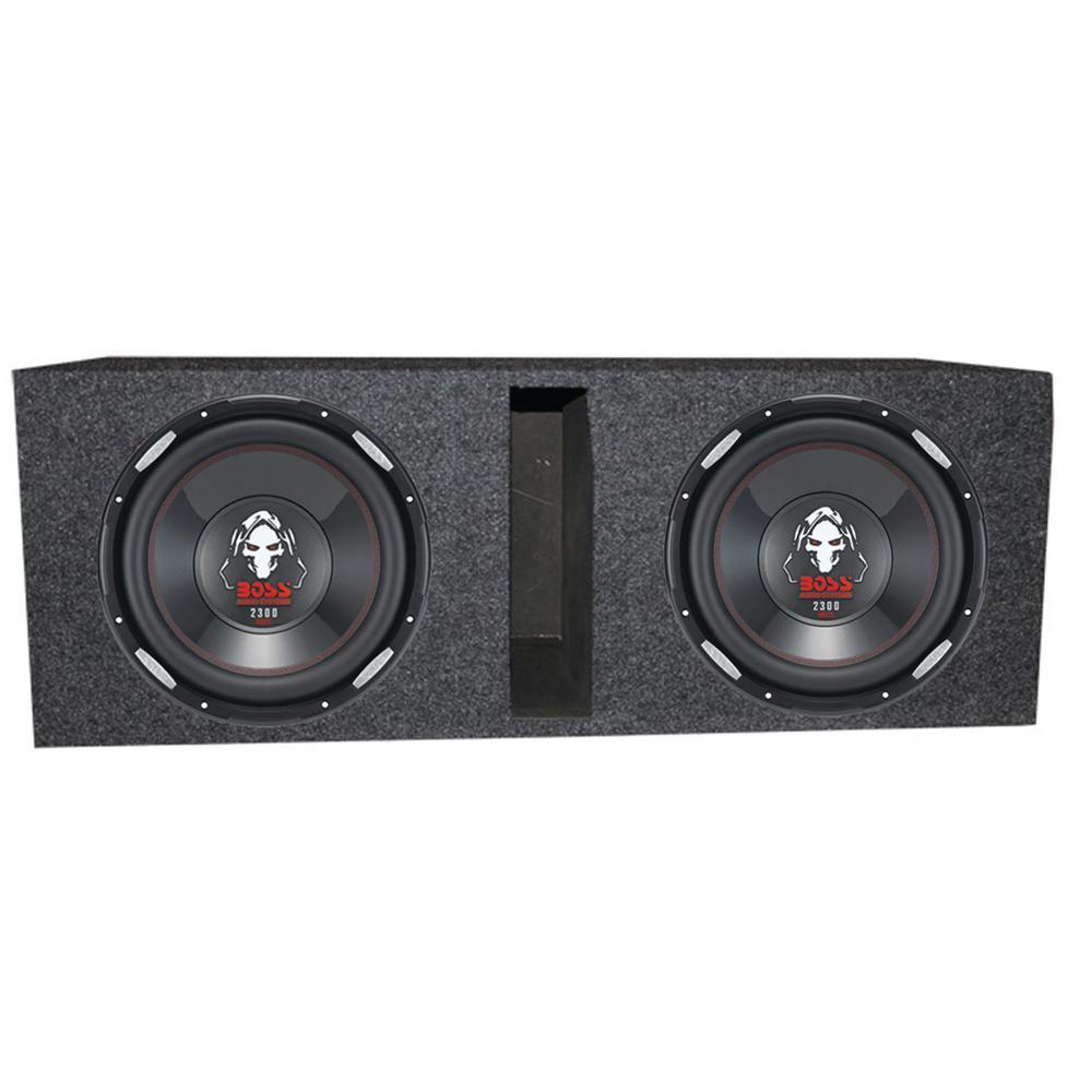 Snag some real bang for your buck with this **Boss P126DVC** subwoofer. Measuring 12", this subwoofer offers a 2300 watt MAX and a 1150 watt RMS. It features dual 4 Ohm voice coils, a poly injected cone and competition style binding posts. The **Q POWER 12"** Dual Heavy Duty Vented Subwoofer Enclosure features solid 5/8" MDF construction, charcoal carpet covering, a dual vented design, and terminal cup connectors. Turn your ride into a sound machine with the help of the Q POWER 12" Dual Heavy Duty Vented Subwoofer Enclosure! Purchase the **Q POWER 12"** with VMInnovations and receive free shipping! If you want the most output for your money, this is the way to go. Q Power provides top quality speaker boxes and accessories, and the QPower QBASS12 is no exception!
