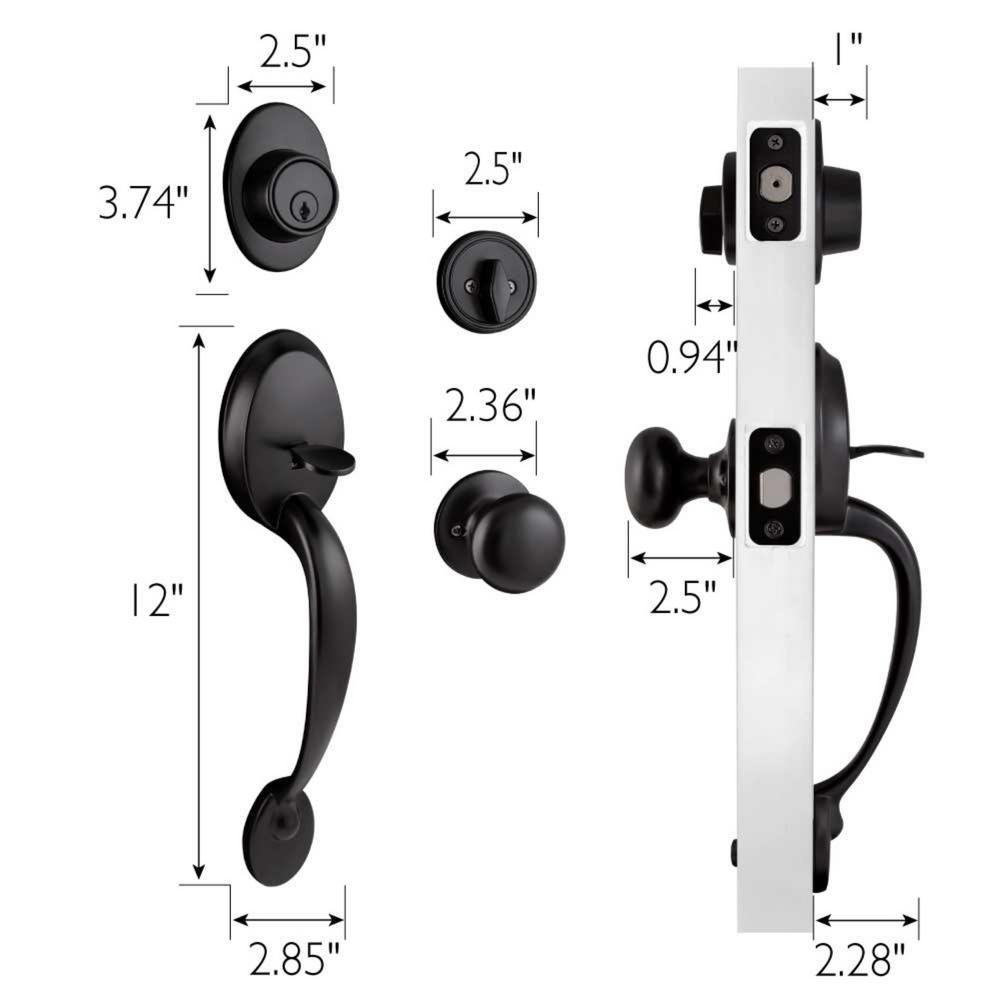 The Coventry Entry Door Handle Set in matte black will add simple style to your modern or rustic farmhouse entry decor. This set includes a vertical handle for the exterior and classic Cambridge knob for the interior side. A single cylinder deadbolt adds security with a keyed lock. Perfect for front and back porch, or patio doors. Designed for left- or right-hand doors, it will easily fit 2 common backsets (2-3/4 in. and 2-3/8 in.) and has a 1 in. x 2-1/4 in. radius round corner face plate. Use this hardware on standard 1-3/8 in. and 1-3/4 in. thick doors.