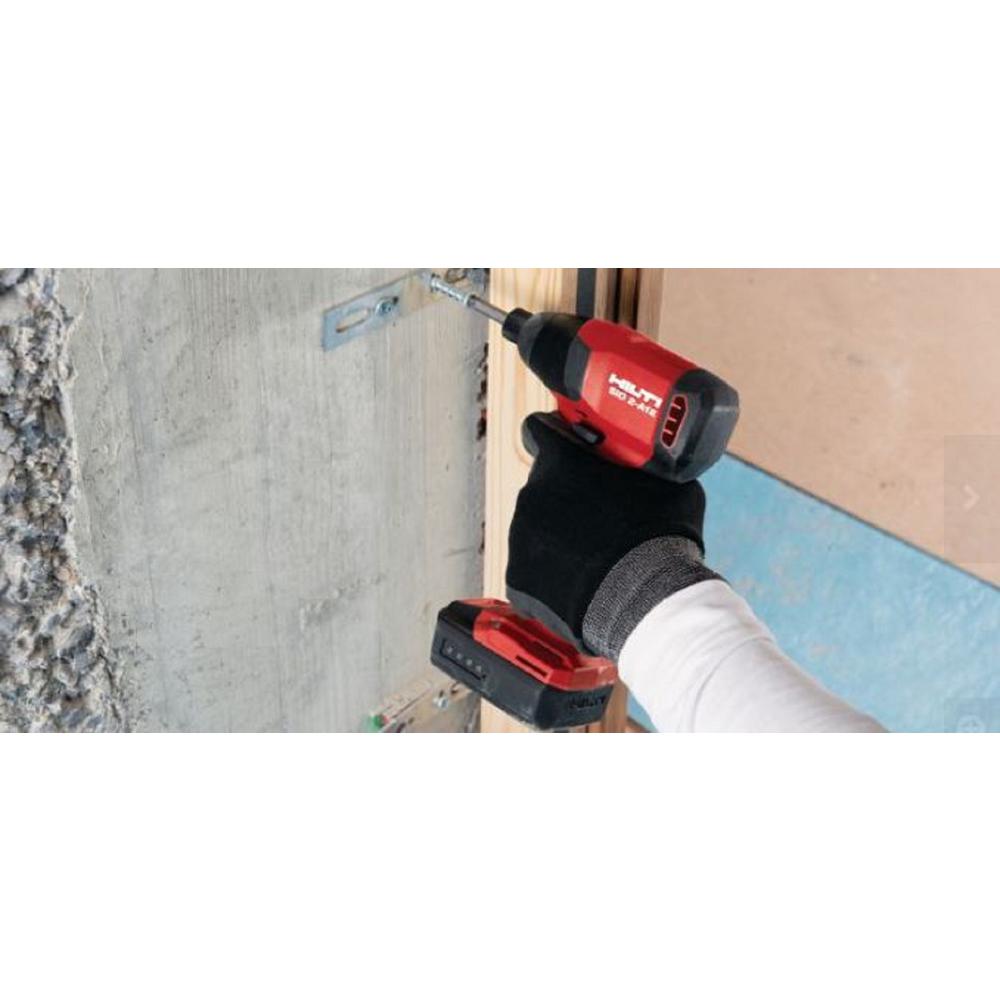 Hilti's SID 2-A12 Cordless Impact Driver is the essential item for Tradesmen who require performance and durability. Subcompact-class cordless 12-Volt Li-ion impact driver with brushless motor and 1/4 in. hexagonal chuck, for when you need access and low weight without sacrificing high torque. Applications include driving small-diameter, self-drilling screws up to 22 mm L in metal, driving HUS 3 and 6 screw anchors with short embedment depth in masonry and concrete.