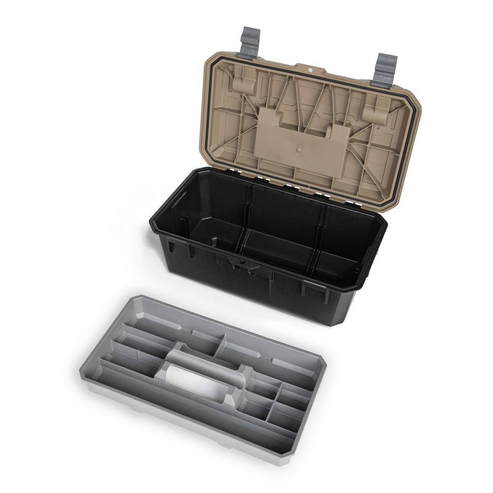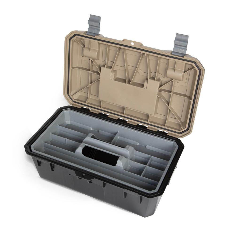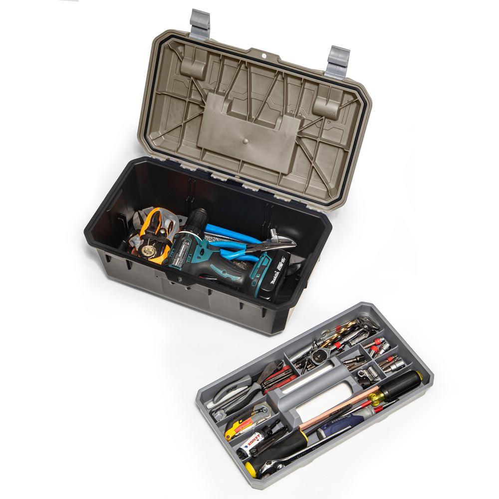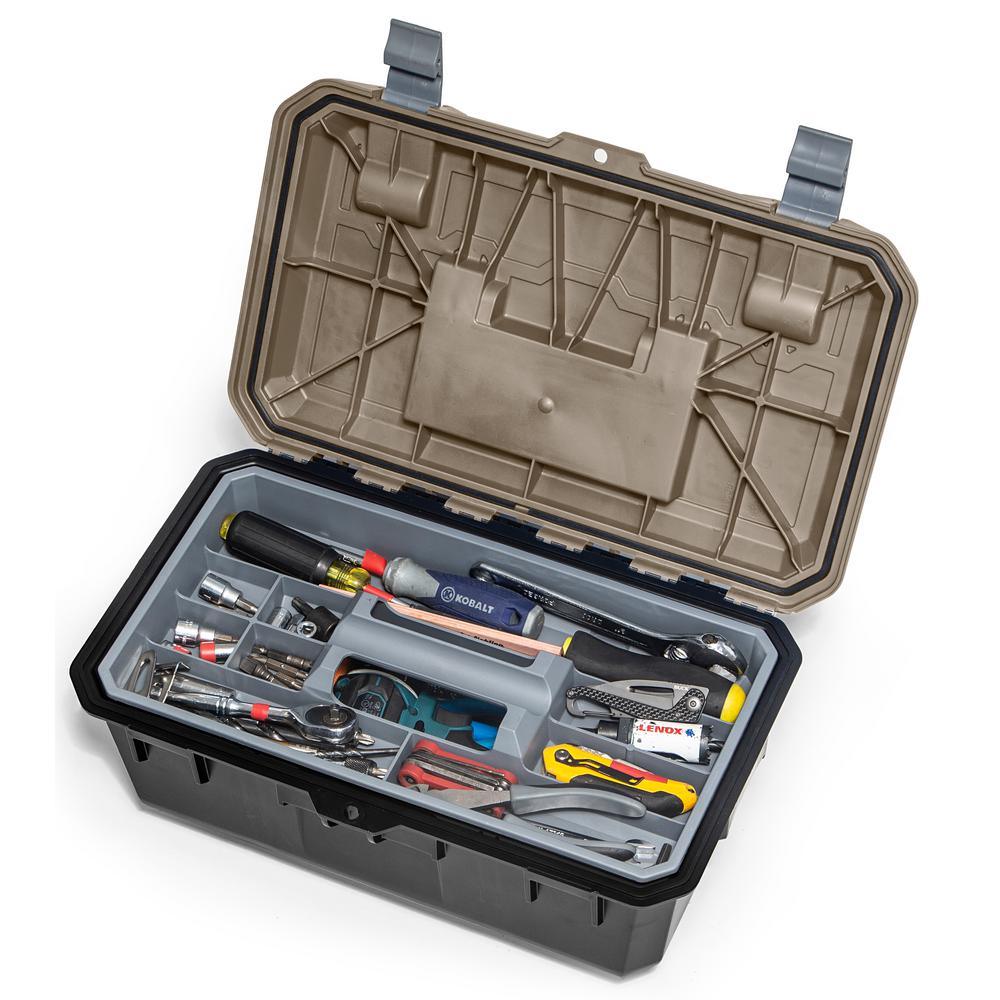 The DECKED Crossbox is an integrated, modular storage toolbox. Designed to complement the functional organization of DECKED drawers, the Crossbox nests perfectly in both full-size and midsize system drawers. The Crossbox is cleverly designed to fit crosswise in wide full-size and midsize drawers and lengthwise in narrow midsize drawers. This fully featured toolbox is a smaller sibling to the wildly popular D-Box, 1 of the brand's best-selling components. Fitted with an EPDM lid gasket for weatherproof storage, the Crossbox features an easy carry handle, a removable small tool and parts organizer tray, and multiple grip points for easy retrieval from system drawers. Made from recycled and virgin polypropylene, the Crossbox box is rugged, durable and meant to take a beating. As with all DECKED's products the Crossbox is manufactured by its dedicated team of injection molders.