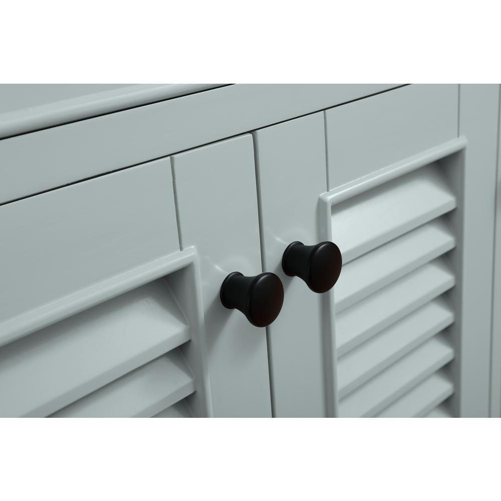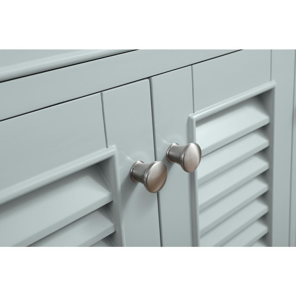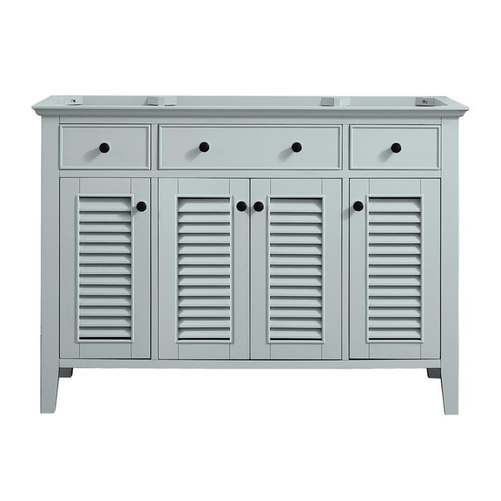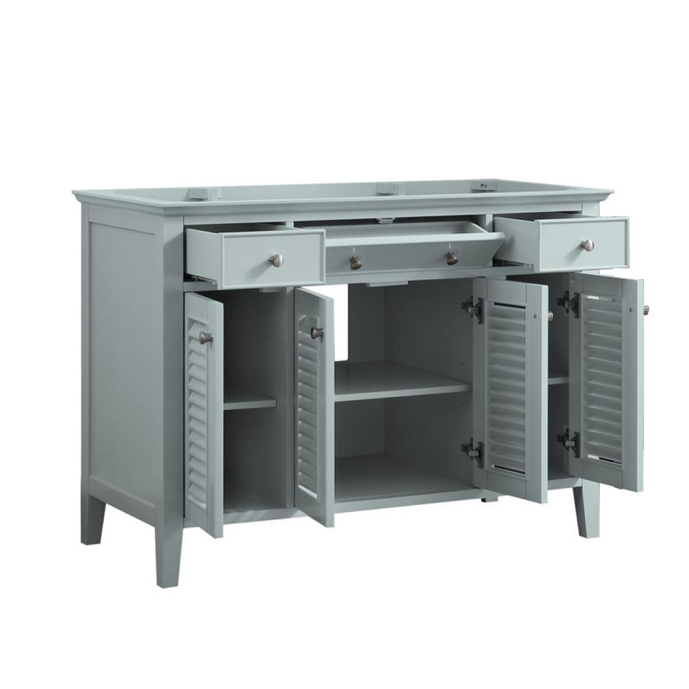 Capture coastal charm with the Fallworth 48 in. W x 21-1/2 in. D Bathroom Vanity Cabinet. A light green finish and louvered doors highlight some of the design details of this collection. The cabinet provides ample storage space with adjustable shelves and a tilt-down drawer. Soft-close glides and hinges and 2 included hardware choices – black or brushed nickel – ensure quality and versatility. Pair it with the matching linen tower and mirror to create the bathroom of your dreams.
