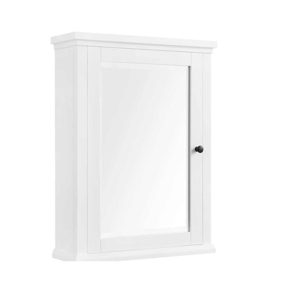 Restore beauty to your bathroom with the Merryfield 24 in. W x 32 in. H Framed Surface-Mount Bathroom Medicine Cabinet in White. Team it with the Merryfield collection of vanities or as a standalone item. Beveled edge and hangs vertically.
